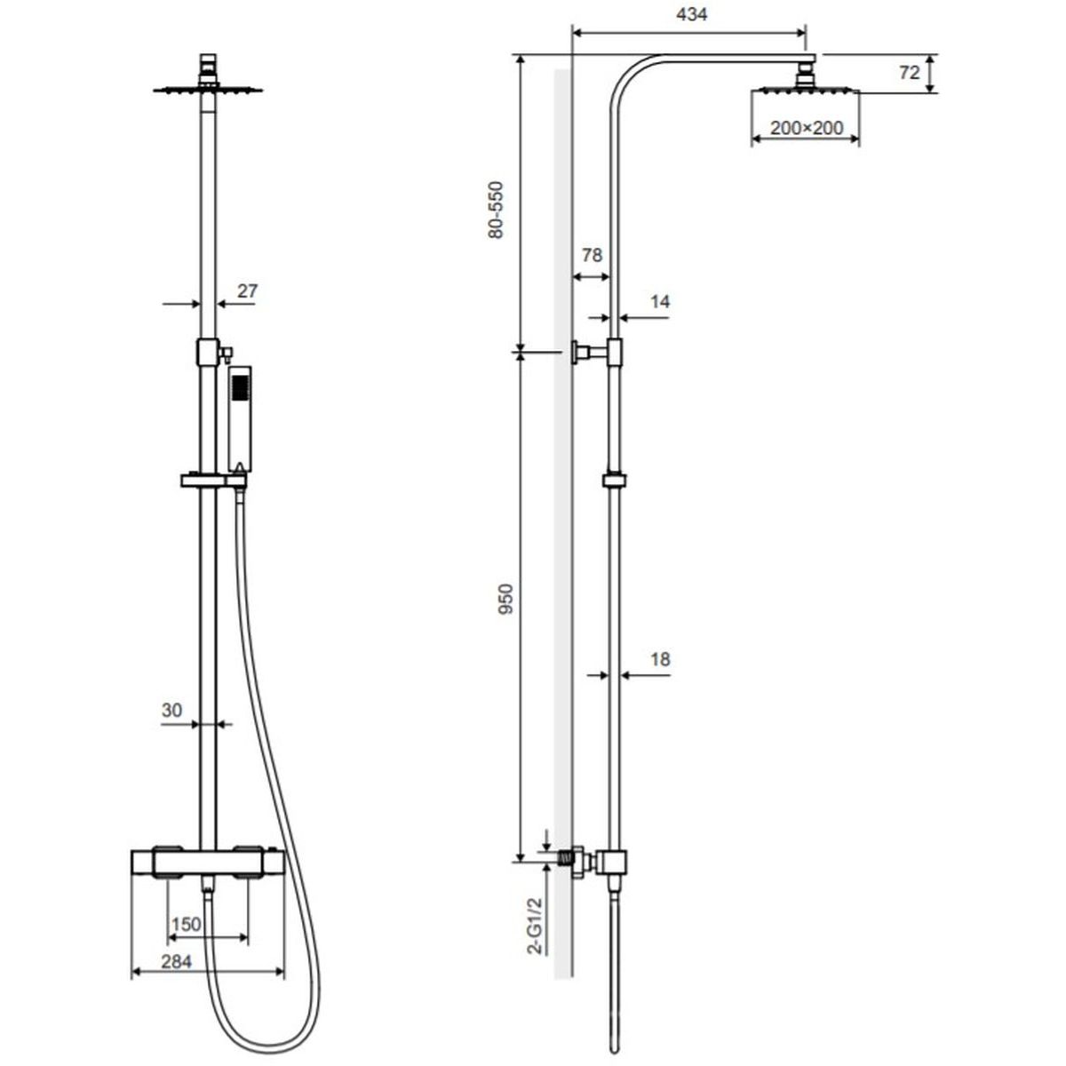 Actima Square Termo zuhany készlet fal termosztáttal króm ARAC.SY.108CR