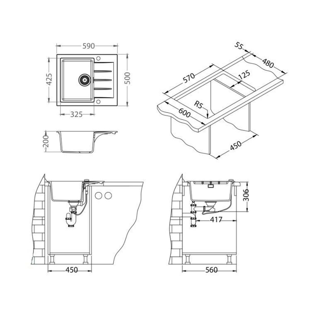 - anyag: Granital (kb. 80% gránit- és kvarcszemcsét tartalmaz, amelyeket kb. 20% kiváló minőségű gyanta köt össze)
