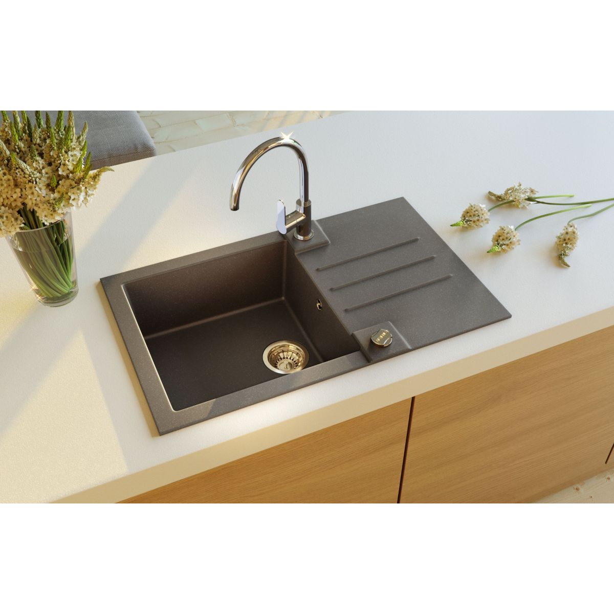Az Alveus Rock 130 konyhai mosogató tartós Granital anyagból készül, amely rendkívül ellenálló a karcolásokkal, ütésekkel és magas hőmérsékletekkel szemben. A Granital ellenáll a színek elhalványulásnak és a tisztítószereknek is, így a mosogató hosszú ideig megőrzi esztétikus megjelenését. Az egymedencés kialakítás kényelmes a mindennapi használat során, a medence megfelelő mélysége pedig kényelmes mosogatást tesz lehetővé. Az Alveus Rock 130 gránit mosogató praktikus megoldás a modern konyhákba, ahol a funkcionalitás, a tartósság és az esztétika fontos. A termék jól illeszkedik különböző típusú konyhai munkalapokhoz, és univerzális választás mind magán konyhák, mind bérlakások számára.