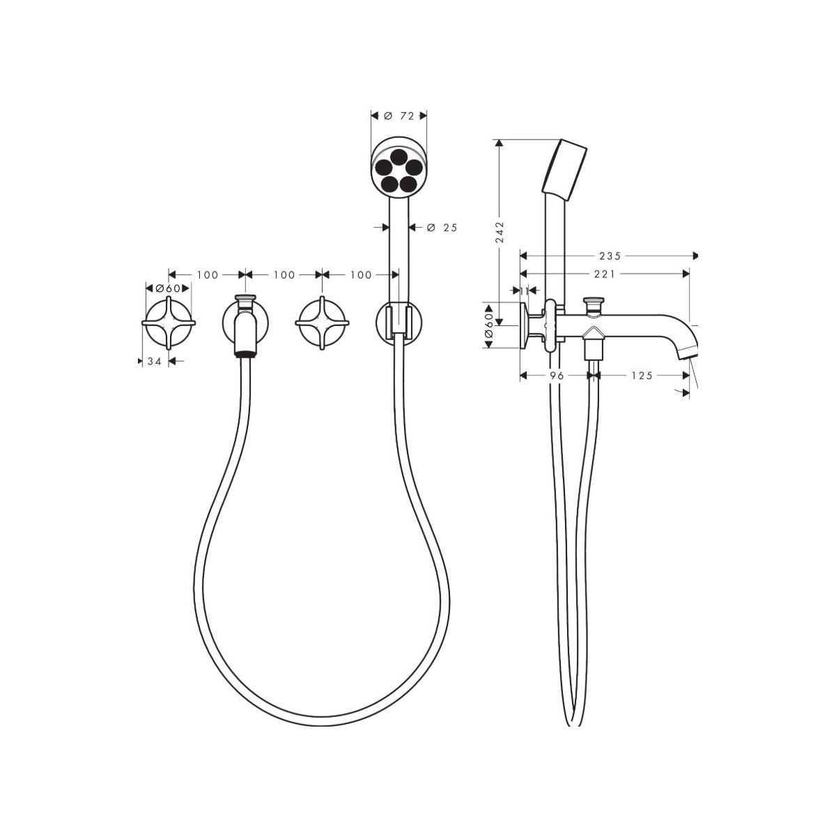 - Tartalmazza: 3 lyukas fürdőkád csaptelep, zuhanyfej, zuhanytartó, zuhanytömlő