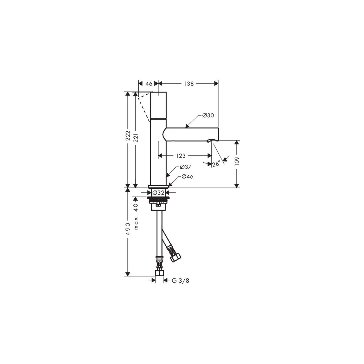 - kifolyócső hossza: 123 mm