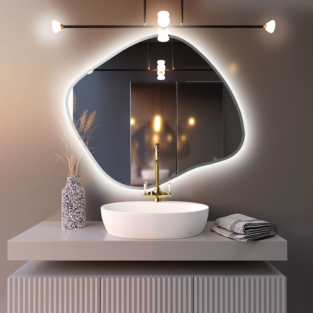 - A LED keret a tükröt a faltól olyan távolságban tartja, amely biztosítja a tökéletes fényterjedést