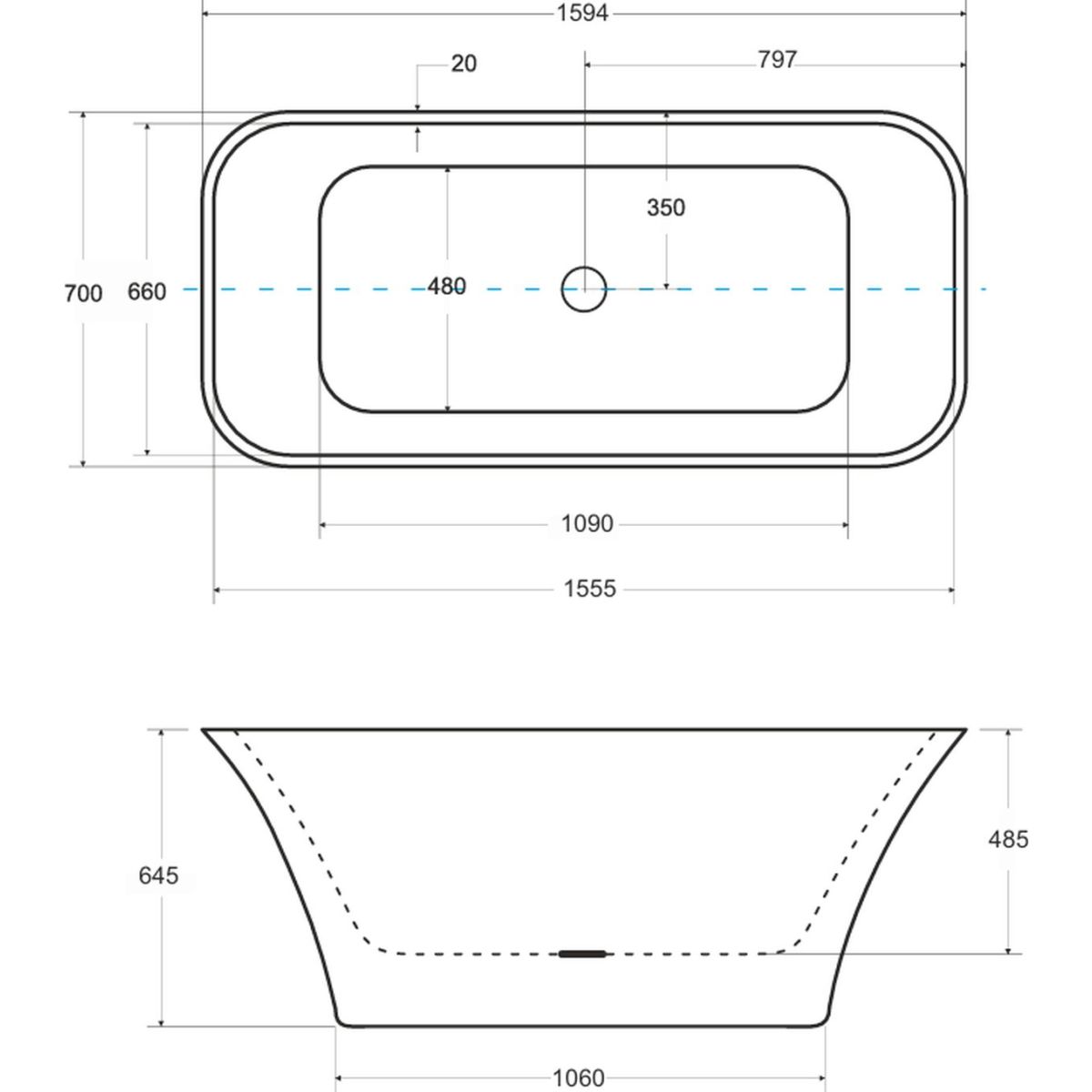 - Mineral DuraBe anyagból készült kád (természetes márvány, gránit és gyanta keveréke)