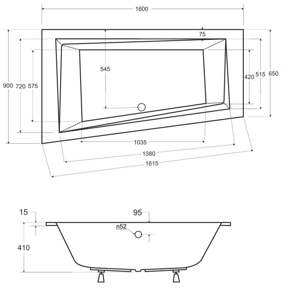 - Vékony, aszimmetrikus kád