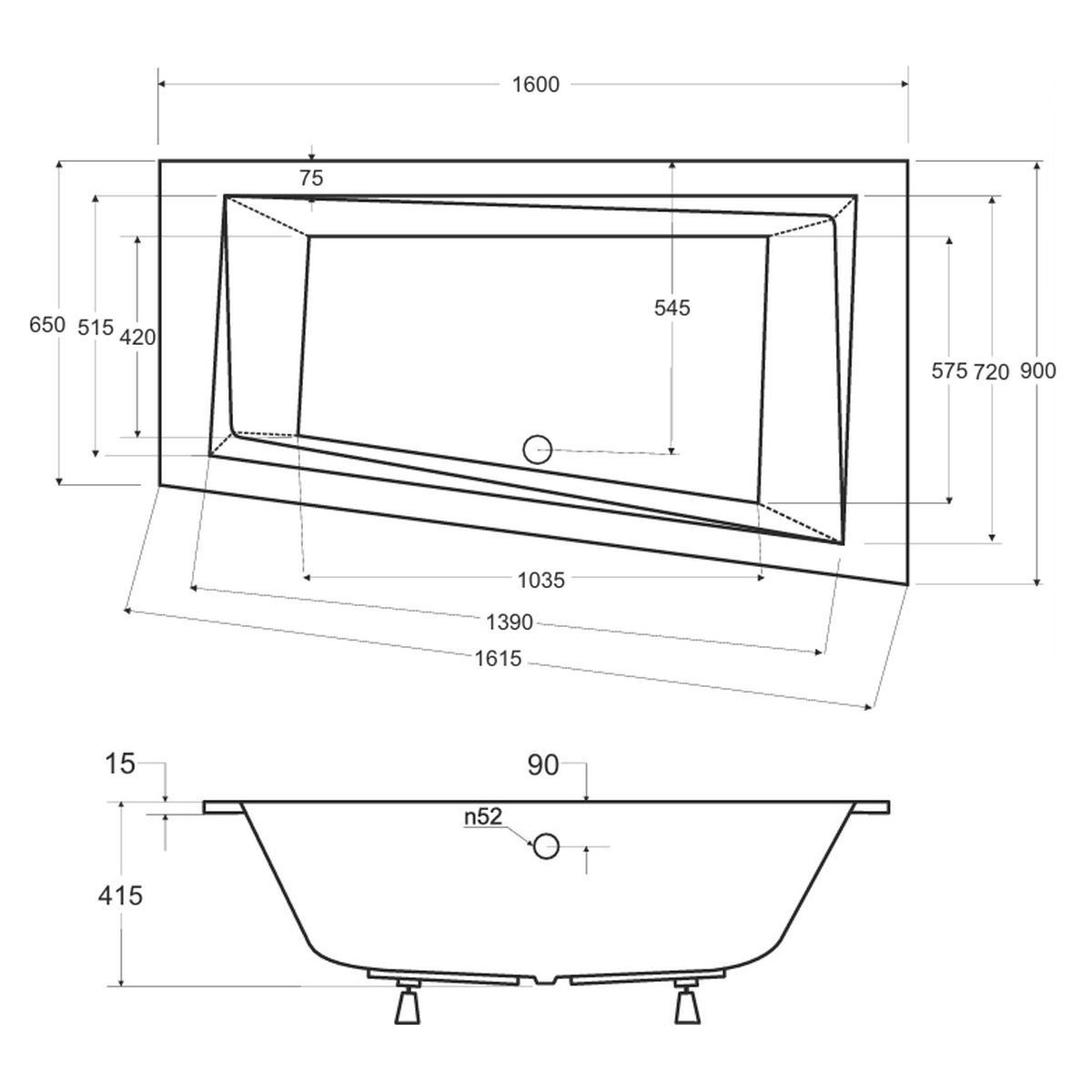 A kádban nincsenek lyukak a keverőcsaphoz. Ezeket a beszerelés során magának kell elkészítenie.