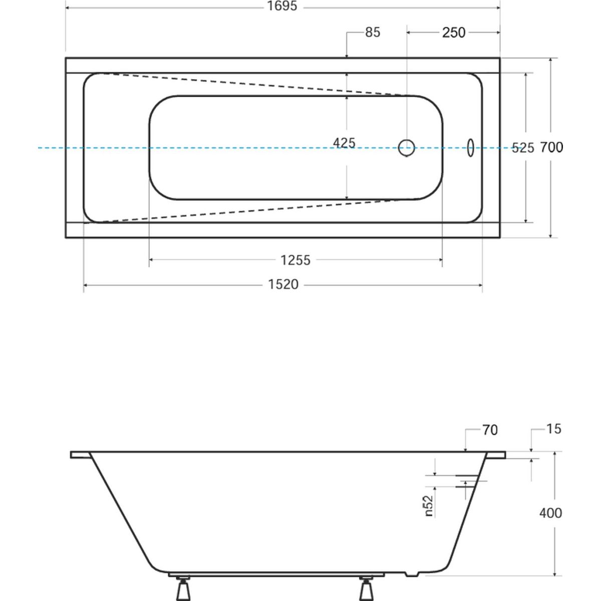Besco Modern slip téglalap alakú fürdőkád 169.5x70 cm fehér #WAM-170-SL