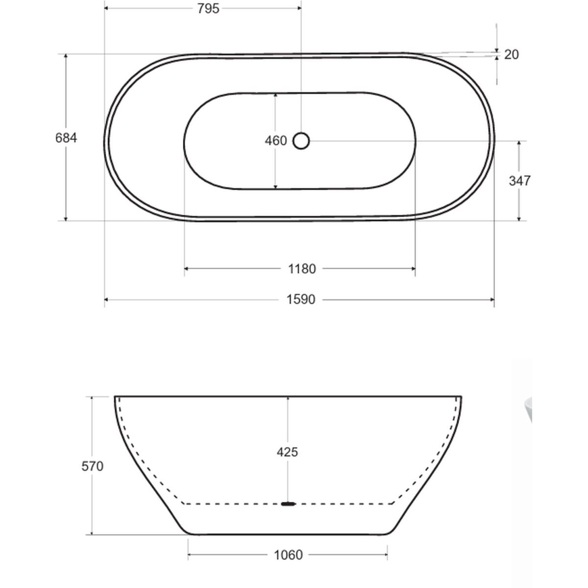 Besco Moya térben álló kád 159x68.4 cm ovális fehér-fekete-kétszínű #WMD-160-MWW
