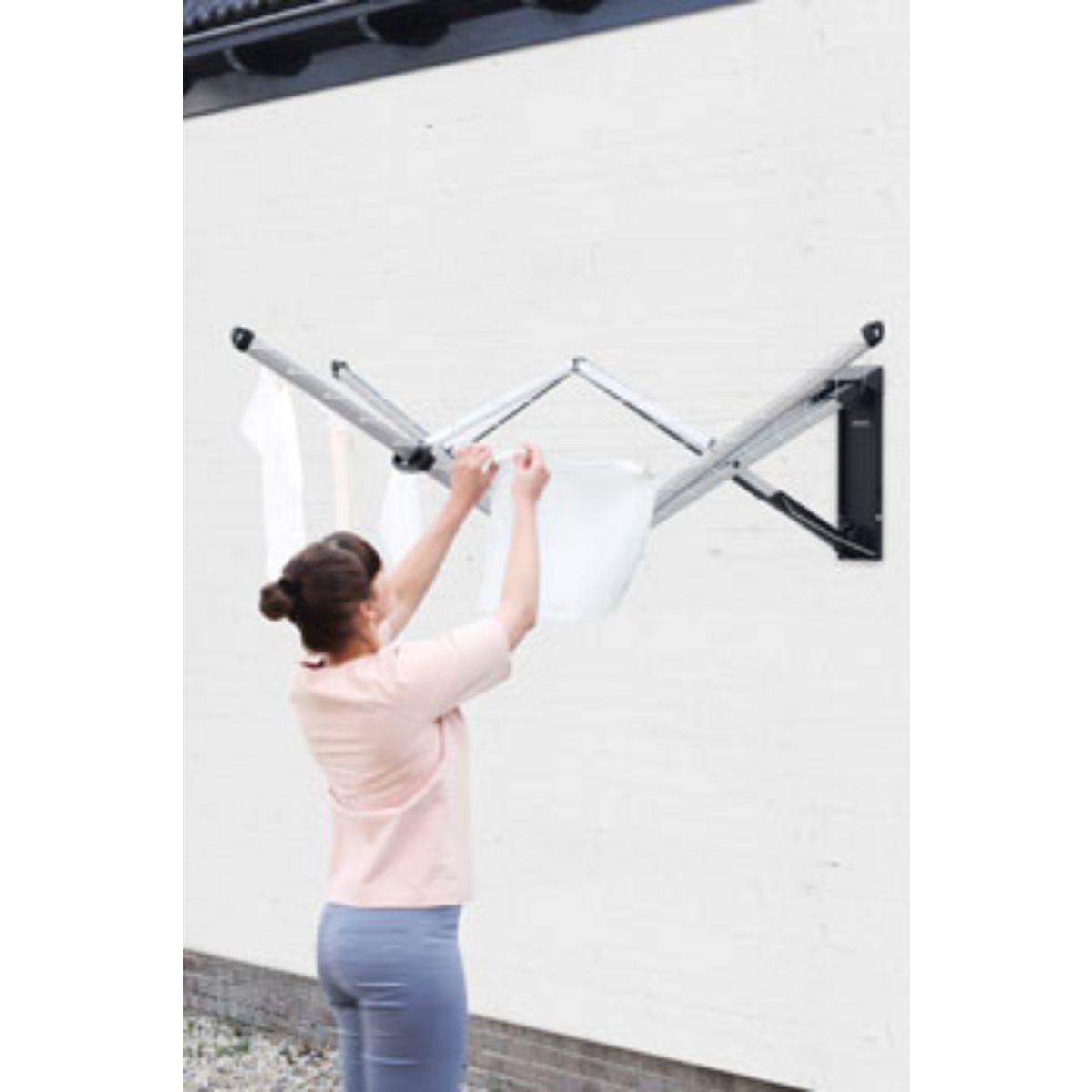 Látja a kerti szárítót, és hirtelen eltűnik! A Brabantia WallFix szárító használaton kívül szépen elrejthető. De egy kézzel kinyithatja, és egy teljes dob mosnivalót akaszthat rá. Még a nagy ruhadarabokat is, mivel a külső vonalak 120 cm hosszúak! Minden vonal kiváló minőségű, UV-álló és praktikus csúszásgátló profillal rendelkezik, hogy a ruhák a helyükön maradjanak. Rendelje meg, szerelje fel a falra a fúrósablon segítségével, és oldja meg egyszerre az összes szárítási problémáját.