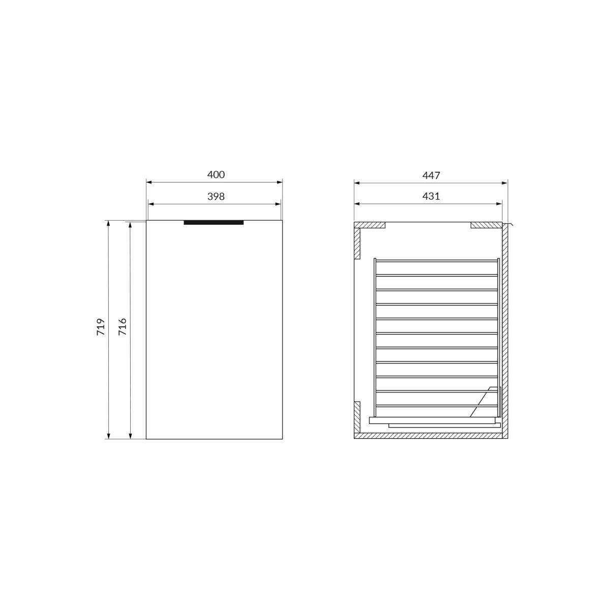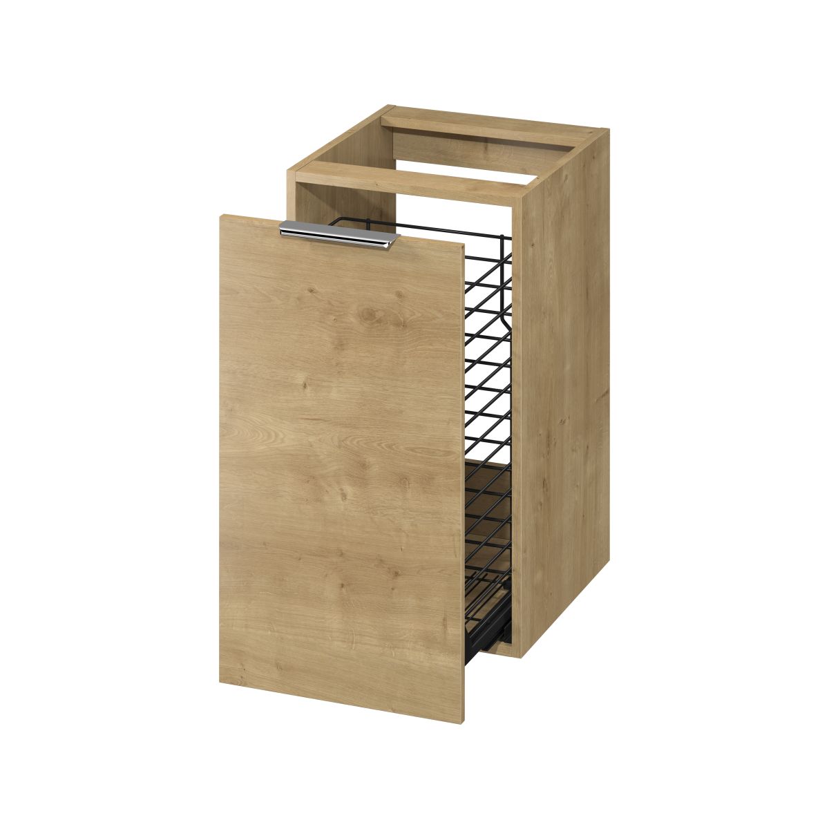 A kosaras szekrény esztétikus helyet biztosít a szennyes tárolására, ami segít rendet teremteni a ruhák között. A fém kosár 1 rekesszel rendelkezik. A szekrénytest és az előlap forgácslapból készült. Külön vásárolhatóak hozzá fekete és ezüst színű fogantyúk, valamint a fogantyúkkal megegyező színű dekoratív lábak.