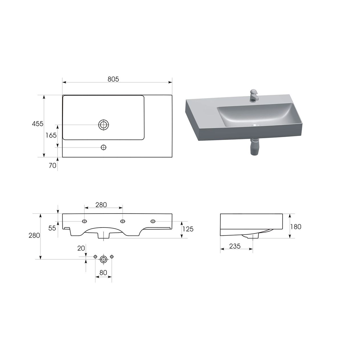 Cersanit Inverto mosdótál 80x45 cm négyszögletes mosdótálak fehér K671-016