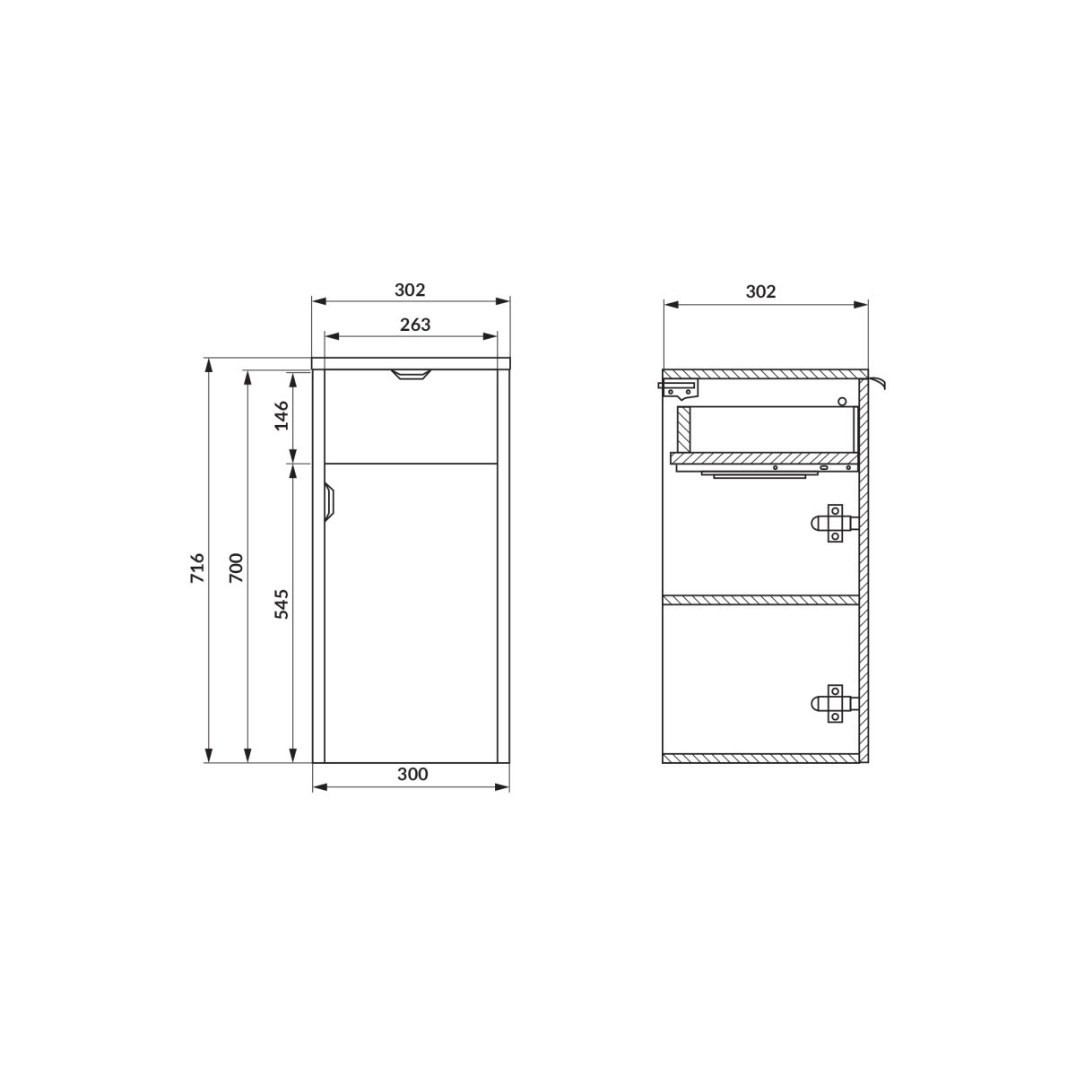 - Az elülső rész és a test hickory tölgy színű laminált forgácslapból készül, ami tartósságot, esztétikus kivitelezést és könnyű tisztíthatóságot biztosít. Alapkivitelben a féloszlop matt fekete színű fém élfogantyúkkal van ellátva, amelyek hangsúlyozzák modern, markáns karakterét. A bútor lehetővé teszi az ajtók jobb- vagy baloldali felszerelését, önszerelésre készült és 2 év garanciával rendelkezik.