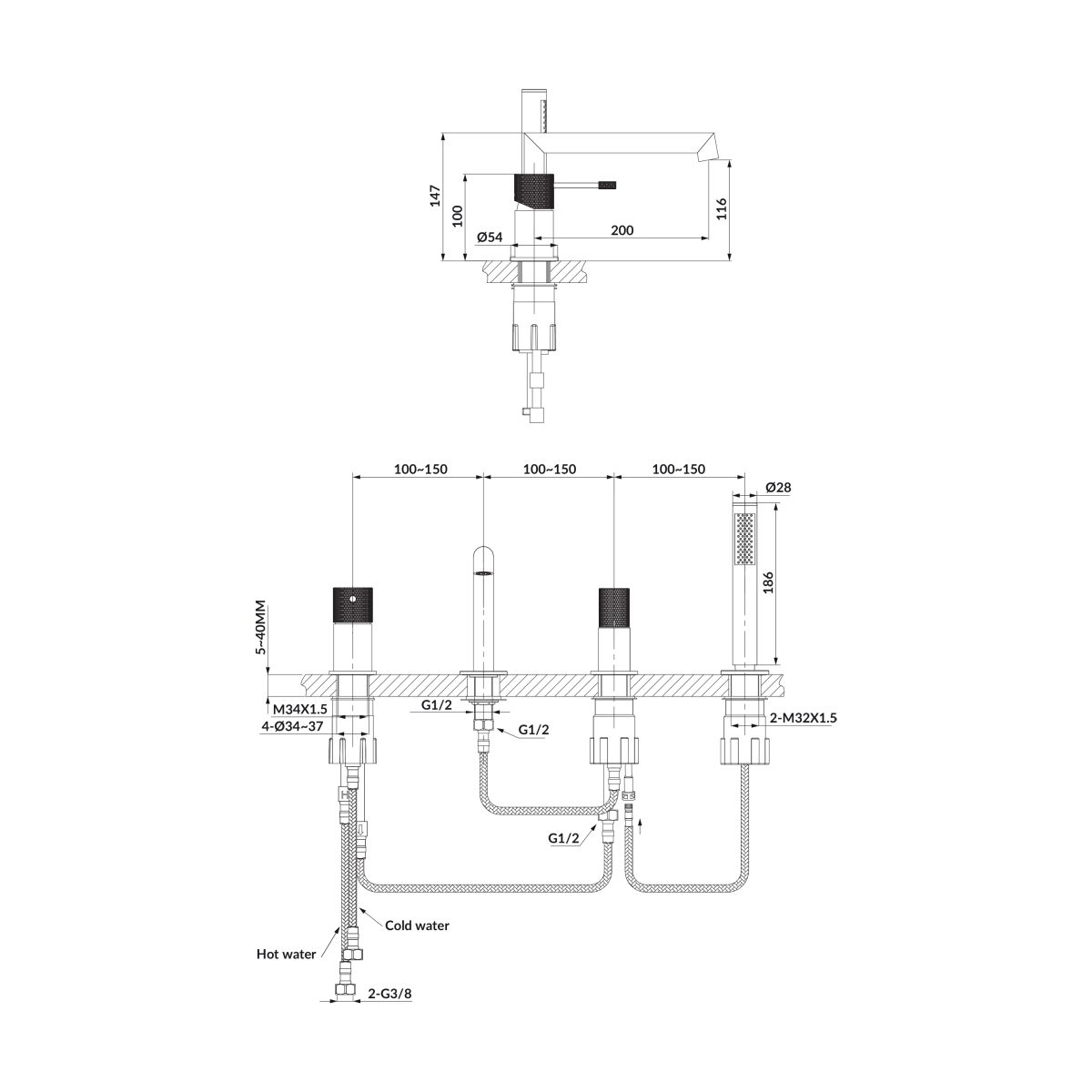 A keverő 2,8 cm átmérőjű, sárgaréz zuhanykagylóval rendelkezik, amely precíz vízsugárzást biztosít. A hornyolt fogantyúk eleganciát kölcsönöznek, és megkönnyítik a hőmérséklet és a vízáramlás szabályozását. A 150 cm hosszú PVC tömlő kényelmes zuhanyozási élményt biztosít.