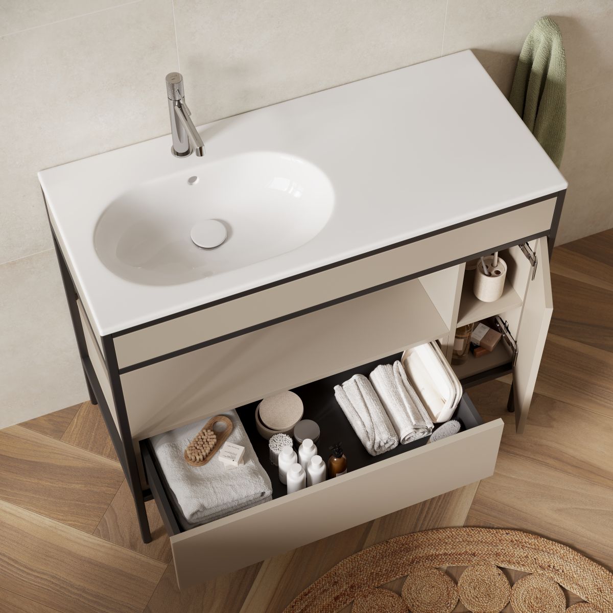 ZEN 100 BY CERSANIT mosdókagyló kerámia munkalapokkal - ez a kerámiatál használhatóságának és a kerámia munkalap funkcionalitásának optimális kombinációja. Kerámia mosdókagyló, csapfurattal és túlfolyóval felszerelve, kompatibilis a Larga kollekció szekrényeivel.