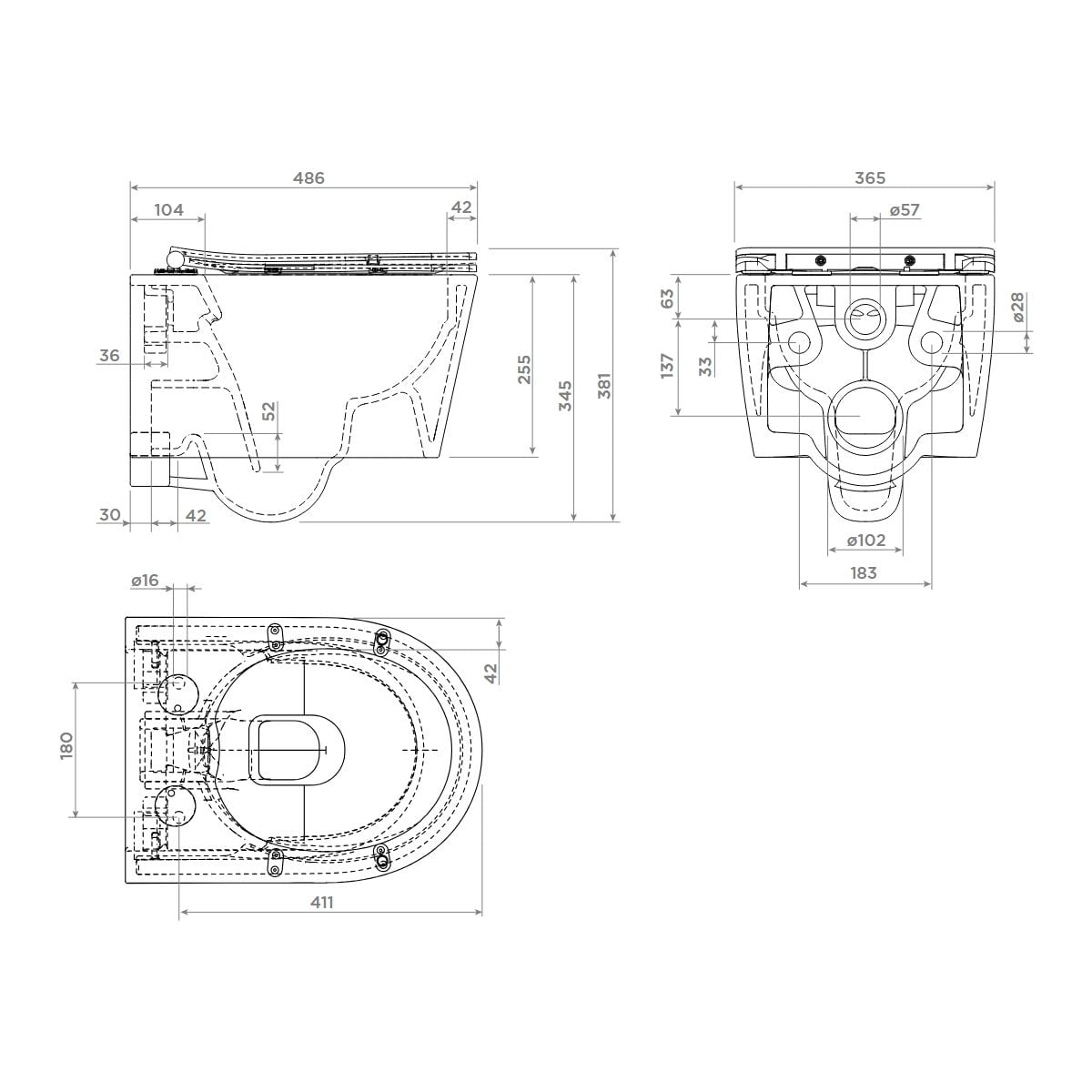 Clou InBe wc csésze lassú záródású ülőkével függesztett perem nélkül fehér matt IB/04.01141.20