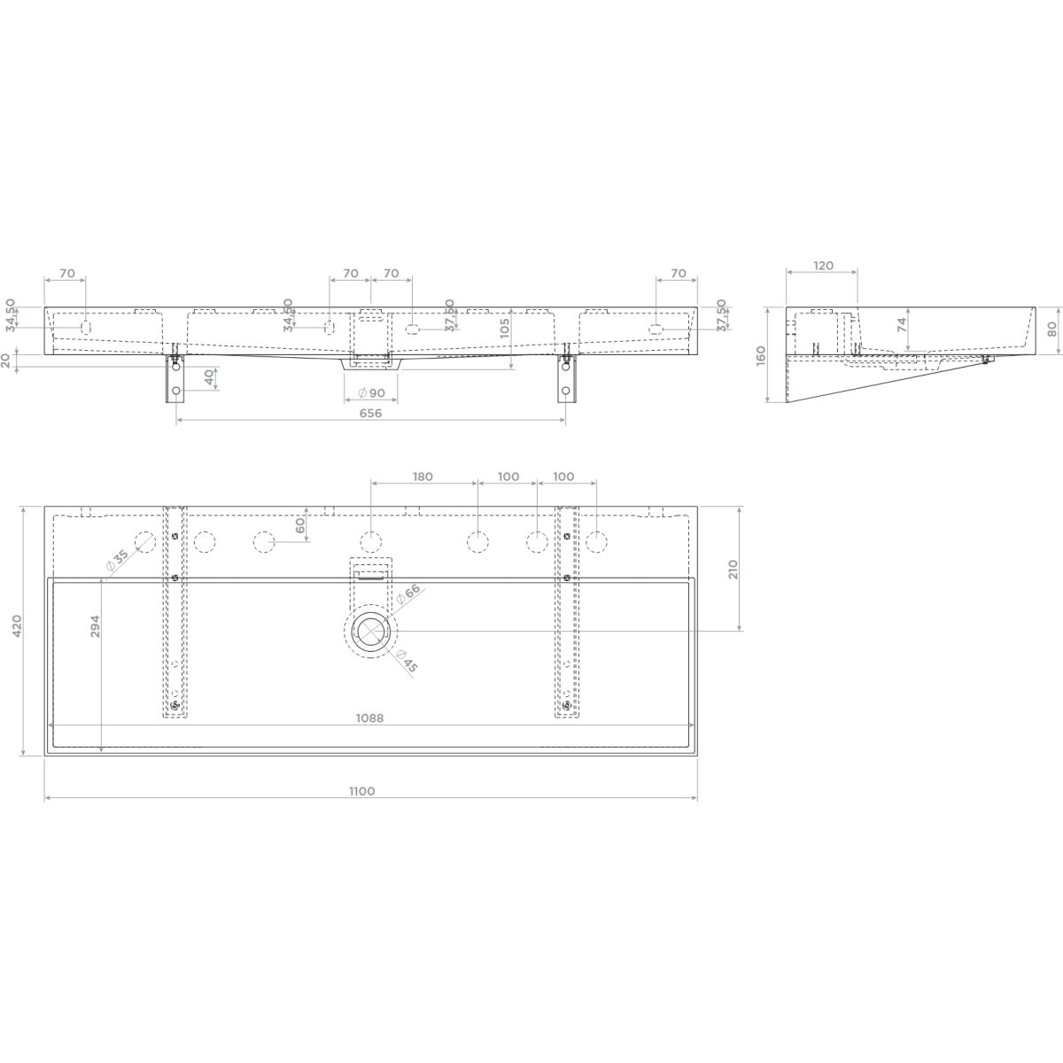 Clou New Wash Me mosdótál 110x42 cm négyszögletes klasszikus-mosdótálak fekete CL/02.30438