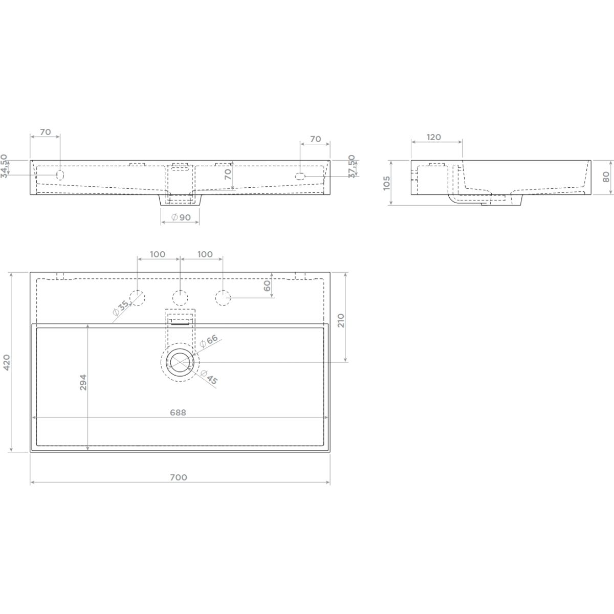 Clou New Wash Me mosdótál 70x42 cm négyszögletes klasszikus-mosdótálak fekete CL/02.30432