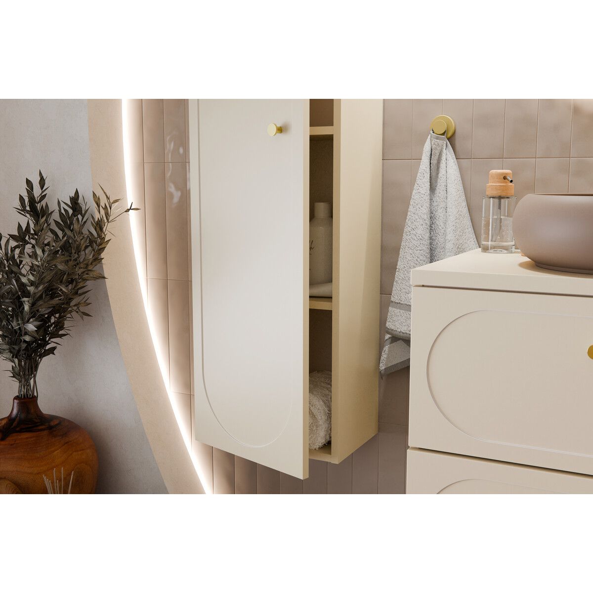 A Donna Sand kollekció magas, egyajtós szekrénye a klasszikus stílus modern újraértelmezése, amelyet a finomság ihletett. A finom, lekerekített homlokzatok egyedülálló karaktert és könnyedséget kölcsönöznek a kollekciónak. A kollekcióban használt Sand Beige dekoráció a belsőépítészeti trendeket meghatározó kasmír színek variációja, amely melegséget és harmóniát visz a belső terekbe. Az egészet arany színű fém gombok egészítik ki, amelyek hangsúlyozzák az eleganciát és nemes kivitelűek.