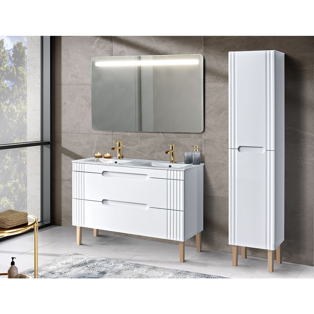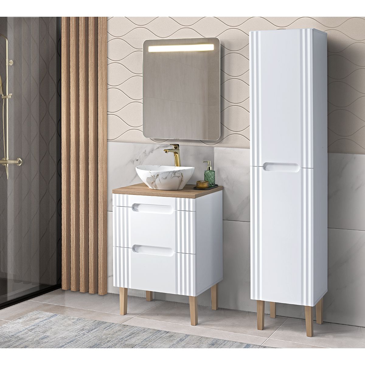 A Fiji egy olyan kollekció, amely ötvözi a modernitást és az időtlen stílust. A termékcsalád bútorai egyaránt összeállíthatók falábakon álló és függő bútorokként. A kollekció tartalmaz magas talapzatot, alátét alatti szekrényeket és Coastal Oak Evoke színű asztallapokat 60 cm, 80 cm, 100 cm és 120 cm méretben. A fogantyúkat modern, maratott alulszekrényekre cserélték, a szekrényfrontokat pedig finom redők jellemzik az oldalakon.