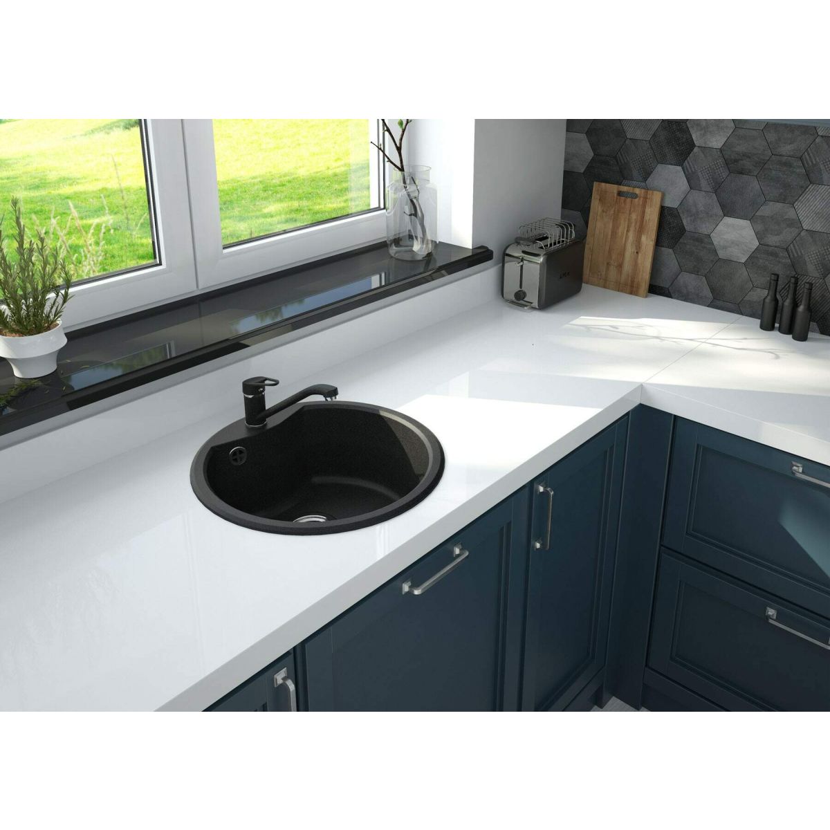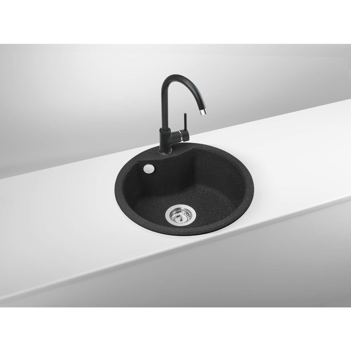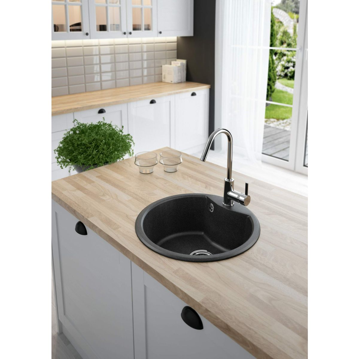 A kör alakú gránit mosogató eredeti alternatívája a téglalap alakú termékeknek. Tökéletesen illeszkedik a kis és nagy konyhákba, lágyságot kölcsönözve nekik. A mosogató gránitból készült, amely ellenáll az ütésnek, a hőnek, az elszíneződésnek és a hőhatásnak. A fenti tulajdonságoknak köszönhetően nagyfokú ellenálló képesség jellemzi. A gránit mosogatót futurisztikus design és elegáns grafitszínű kivitel jellemzi. Sikkes és kifinomult hangulatot visz a helyiségbe. A kerek gránit mosogató ráadásul lehetővé teszi a mosó- vagy mosogatógéphez való csatlakoztatást egy speciális tartozékon keresztül. Ezáltal a termék tökéletesen kiegészíti a többi lakberendezési tárgyat.