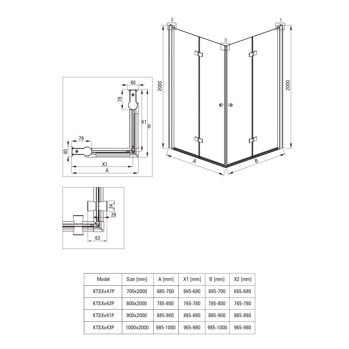 A burkolat összecsukható ajtókból áll. TOTALWHITE edzett üvegből készültek. A Kerria egy fordítható modell, lágy záródási mechanizmussal. Az ajtókat Active Cover borítás fedi, amely víztaszító tulajdonságainak köszönhetően megkönnyíti a kabin tisztán tartását. A króm profilok tökéletesen illeszkednek az azonos kivitelű szerelvényekhez, és klasszikus és modern belső terekhez egyaránt illenek.