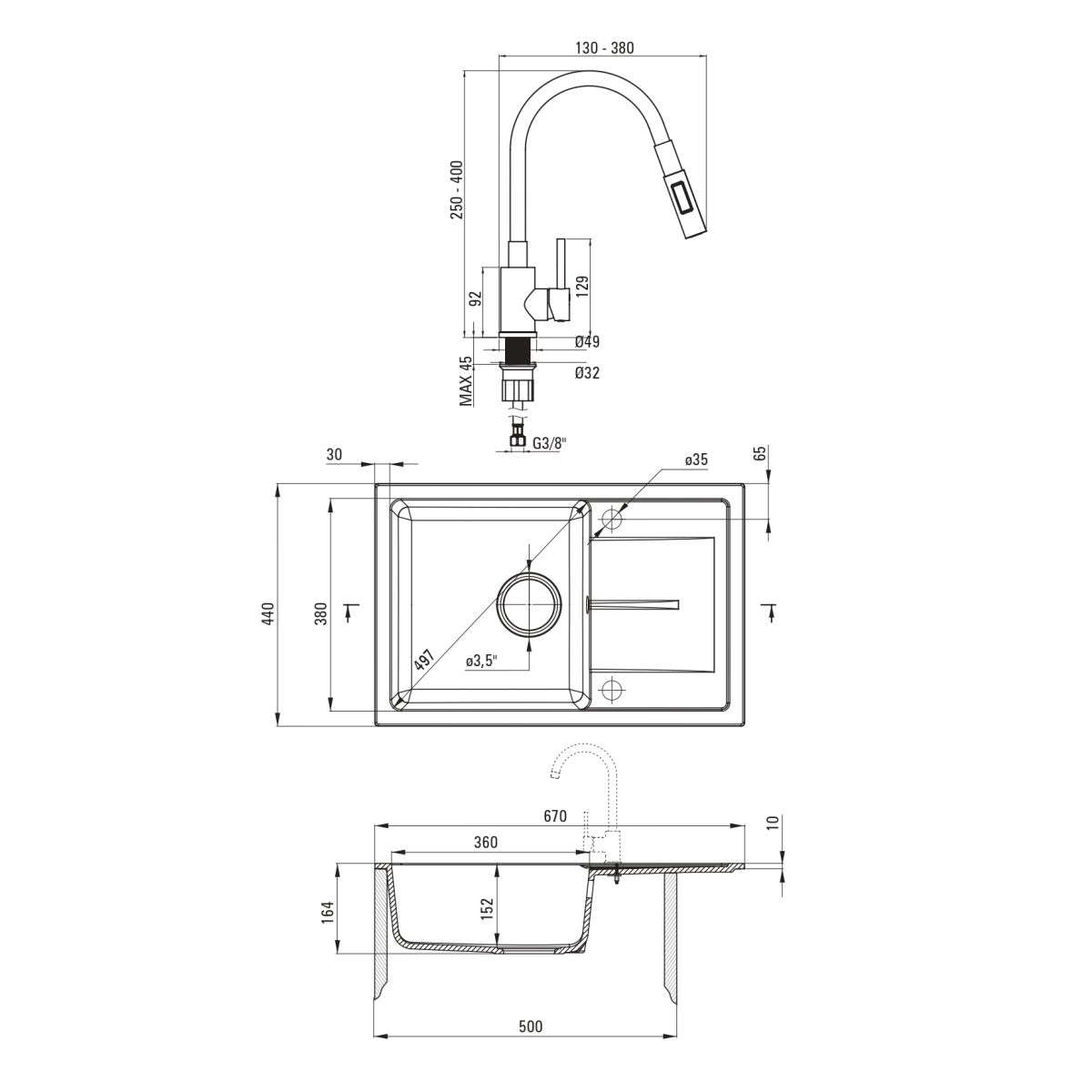 Stílusos és funkcionális konyhai szett, amely ötvözi a gránit mosogató tartósságát a rugalmas keverőcsap funkcionalitásával. A szürke mosogató tágas tállal rendelkezik és megfordítható, jobb vagy bal oldali lefolyóval szerelhető. Ellenáll az ütésnek, a hőnek, az elszíneződésnek és a hőhatásnak, így évekig kitart anélkül, hogy elveszítené a megjelenését. A készletet egy ívelt kifolyóval ellátott keverővel egészíti ki, tökéletesen illeszkedő szürke színben. Modern megjelenése kéz a kézben jár a könnyű használhatósággal - az ívelt kialakítás lehetővé teszi a nagy edények kényelmes feltöltését és a mosogató könnyű tisztítását. További funkció a 2-funkciós kézizuhany, amely lehetővé teszi a váltást a szellős permet és az esőzuhany között - ideális a zöldségek vagy gyümölcsök öblítéséhez. A beépített levegőztető lágy és gazdaságos permetezést tesz lehetővé, ami nagyobb kényelmet és alacsonyabb vízfogyasztást jelent. Ez a szett ideális azok számára, akik megbízható és esztétikus megoldást keresnek a mindennapi konyhai használatra.
