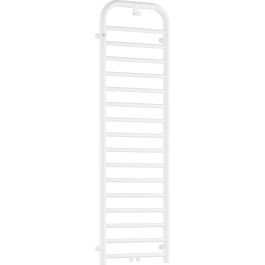 Az 1570x500 méretű, matt fehér színű, stílusos fürdőszobai radiátort lágy vonalvezetés és kiváló minőségű kivitel jellemzi. Funkcionális kampóval van felszerelve a törölköző vagy fürdőköpeny számára. Ez egy hibrid modell: víz-elektromos, amely lehetővé teszi egy opcionális 600 W-os fűtőtest beszerelését, amely a fűtési szezonon kívül is biztosítja az újrafűtést vagy a törölközőszárítást. A fűtőtesthez szelepet kell vásárolni. Mind az opcionális fűtőtest, mind a szükséges szelep a radiátorral megegyező színben kapható.
