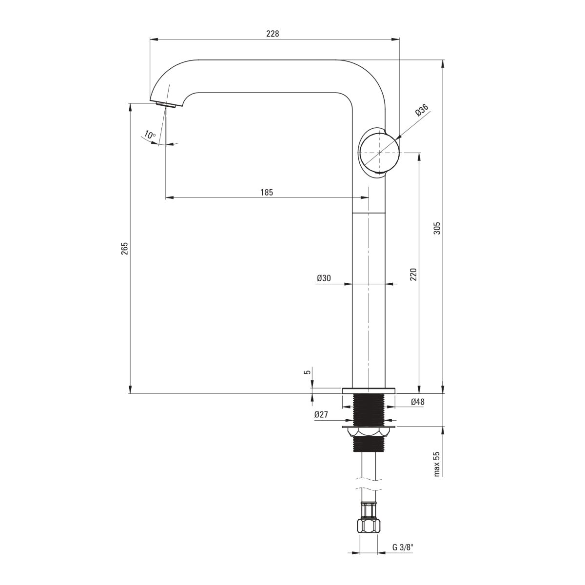 - a csaptelep kifolyójának tartománya [mm]: 185