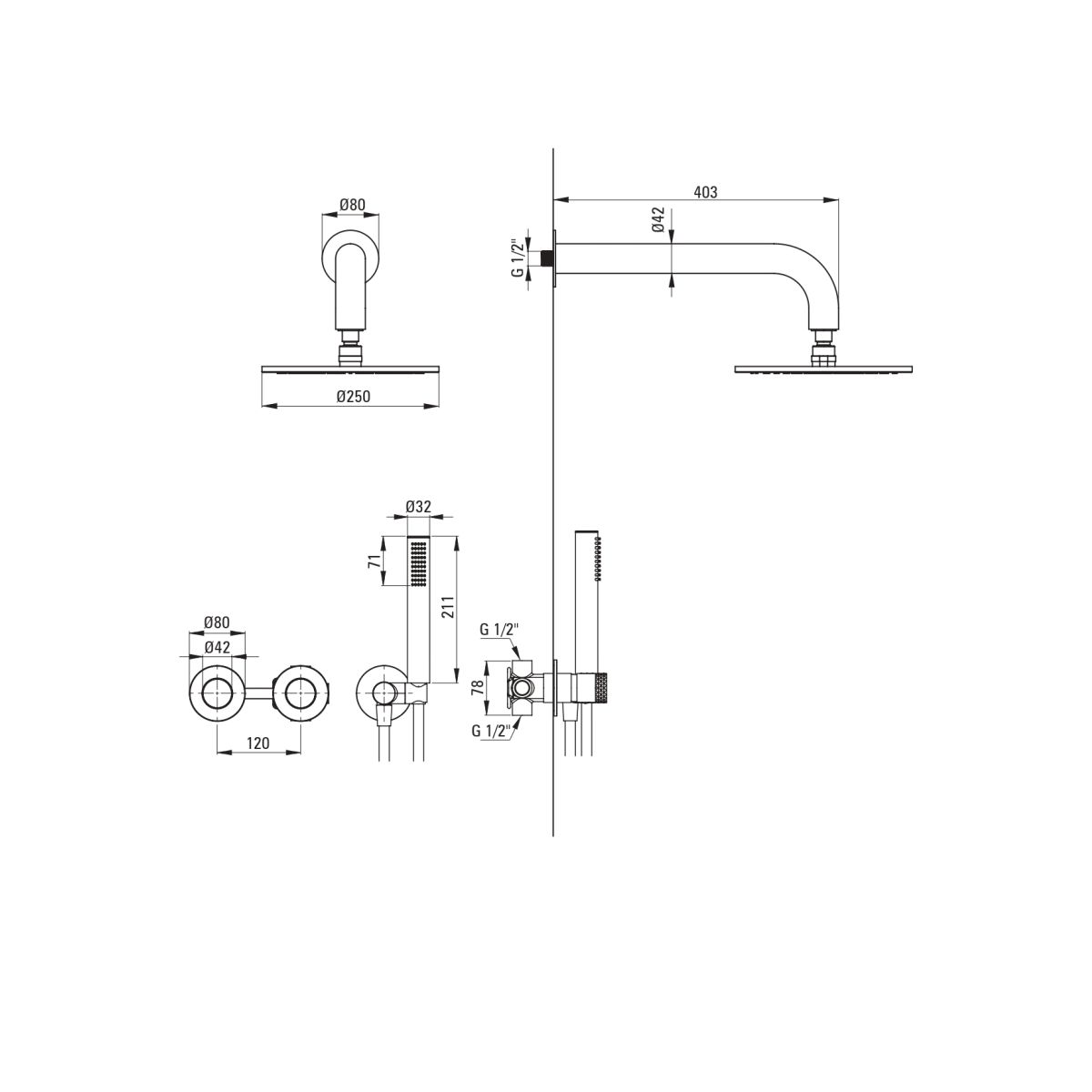 - kifolyócső típusa: falra szerelhető szórófej