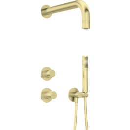 A Silia Hexa rejtett szett a modern technológia és az exkluzív design harmonikus kombinációja. A limitált kiadású Hexa jubileumi sorozatból származik, amely a Silia felsőkategóriás kollekció része. Különlegessége egy ékköves kar, amelynek precízen maratott, geometrikus szerkezete finoman tükrözi a fényt, kiemelve a keverő egyedi jellegét. A szett egy falra szerelhető kifolyócsőből, egy zuhanyfejjel, egy rejtett keverőből, egy tömlőből, egy zuhanykarból és egy szögcsatlakozóból áll. A keverő kerámia mechanikus funkciókapcsolóval van felszerelve, amely garantálja a vízforrás zökkenőmentes és pontos váltását. A sárgaréz zuhanyfej Anti-Calc rendszerrel rendelkezik, amely hatékonyan csökkenti a vízkőlerakódást, így könnyen tisztán tartható. A zuhanytömlő Anti-Twist technológiával rendelkezik, amely megakadályozza a csavarodást használat közben. A kiváló minőségű rozsdamentes acélból készült zuhanykagyló kellemes esőcseppes permetet biztosít a pihentető fürdőzéshez. További jellemzője a mozgatható szögletes csatlakozás, amely lehetővé teszi a kézibeszélő helyzetének beállítását a nagyobb kényelem érdekében. A teljes kialakítás feltűnő, csiszolt arany színben készült, ami kiemeli a fürdőszoba modern jellegét, elegáns és kifinomult megjelenést kölcsönözve neki.