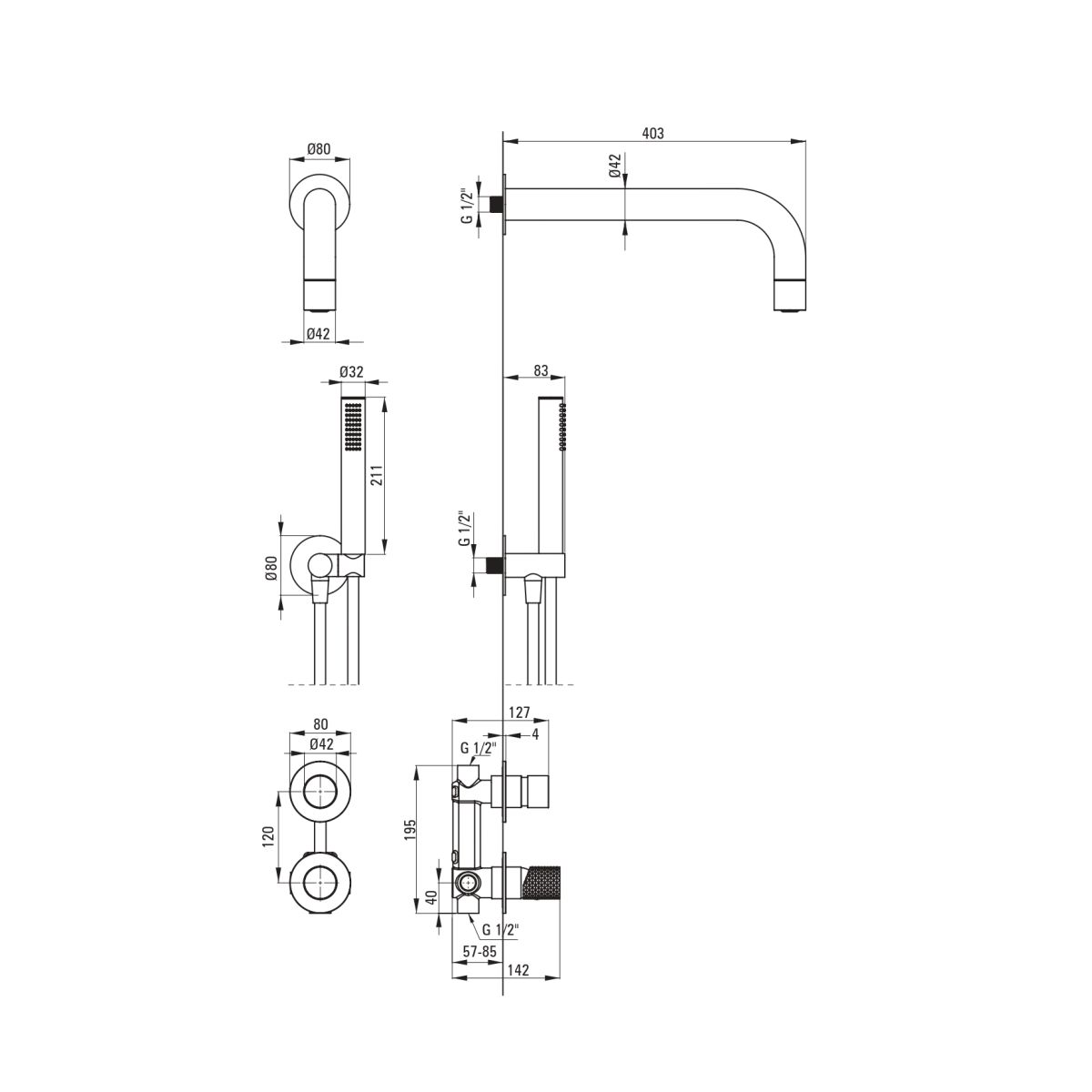 - Készlet tartalma: csaptelep zuhany/kád váltóval, fejzuhany, kézi zuhanyfej, zuhany tömlő, szögcsatlakozás