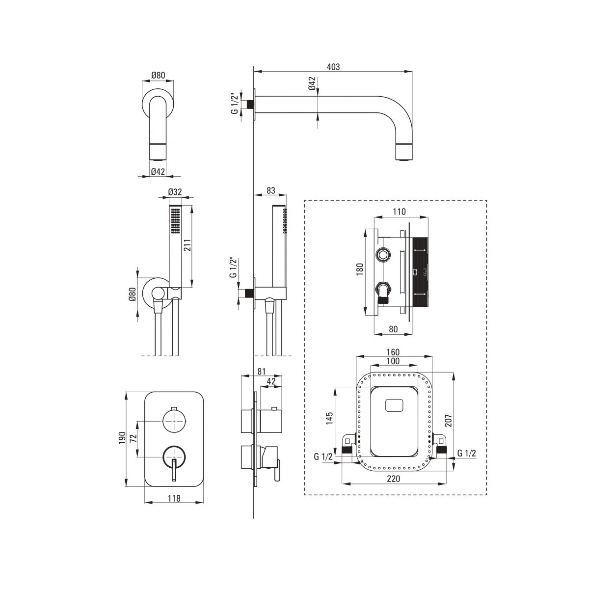 - kifolyócső típusa: falra szerelhető szórófej