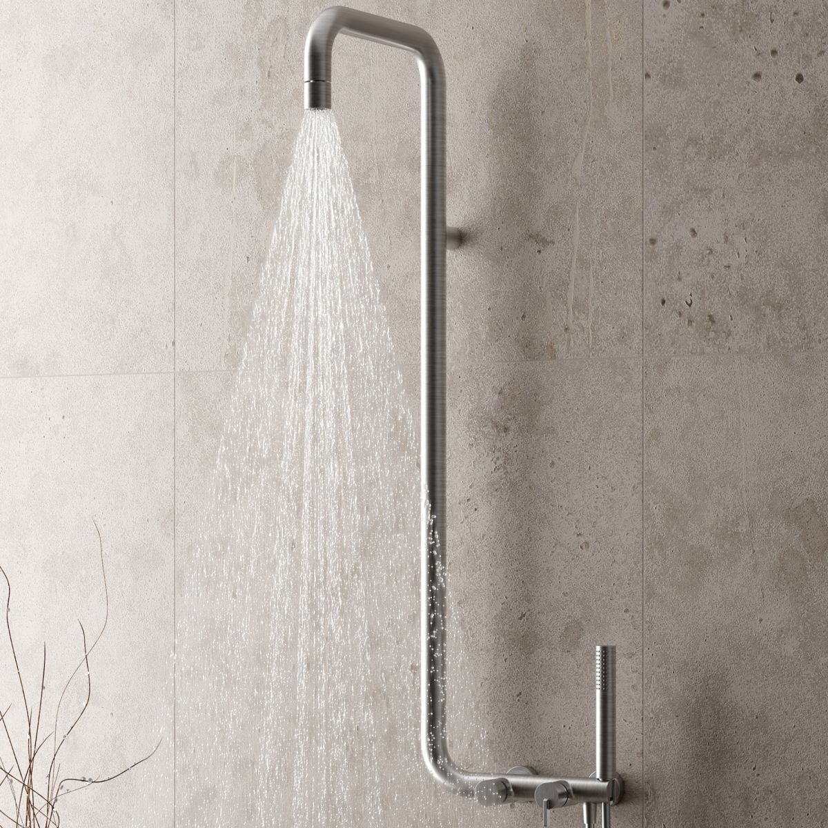A Silia szett intenzív, koncentrált vízsugarat biztosít a 42 mm átmérőjű, sárgarézből készült esőzuhanynak és az egyfunkciós, rozsdamentes acélból készült kézi zuhanynak köszönhetően. Az S áramlási osztály (15,1–19,8 l/perc) garantálja a kényelmes fürdést, miközben biztosítja a vízfogyasztás ergonómiáját.