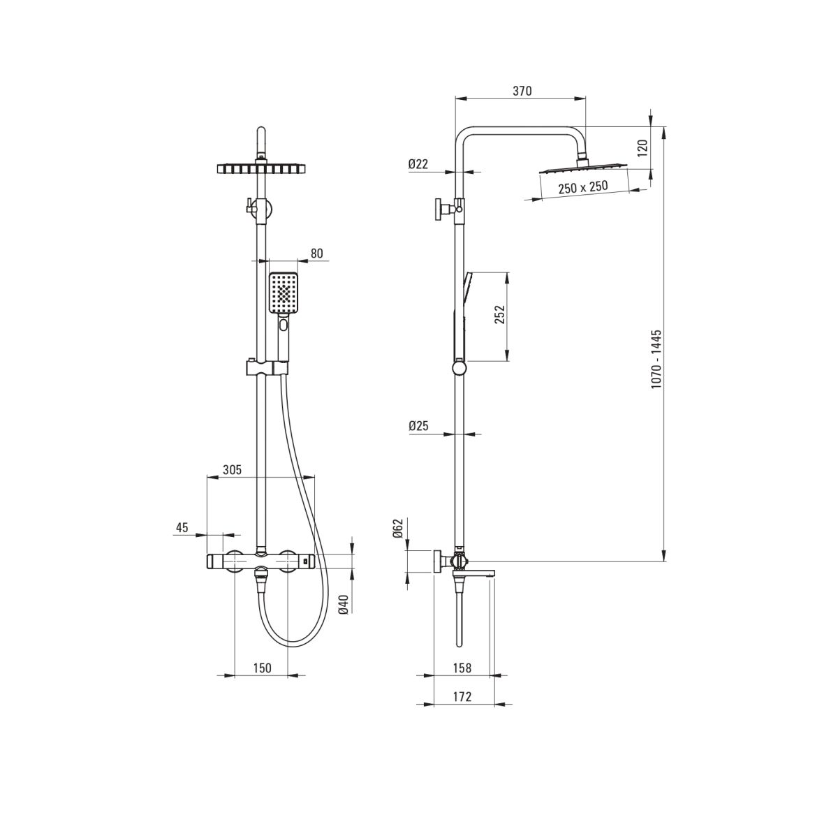 A termosztatikus kádas zuhanykeverő egyesíti az igényes kialakítást és a biztonságot. Felhajtható kifolyócsővel, permetkapcsolóval és 38 fokos hőmérséklet-zárral rendelkezik a biztonságos fürdés érdekében. Az ergonomikus gombok megkönnyítik a pontos vezérlést, míg az ultravékony zuhanyfej és a 3-funkciós kézibekötő vízkő elleni rendszerrel rendelkezik, amely megakadályozza a vízkő felhalmozódását, így növelve a termék élettartamát. A Cascada esőzuhany nemcsak az esztétikáról, hanem mindenekelőtt a funkcionalitásról szól.