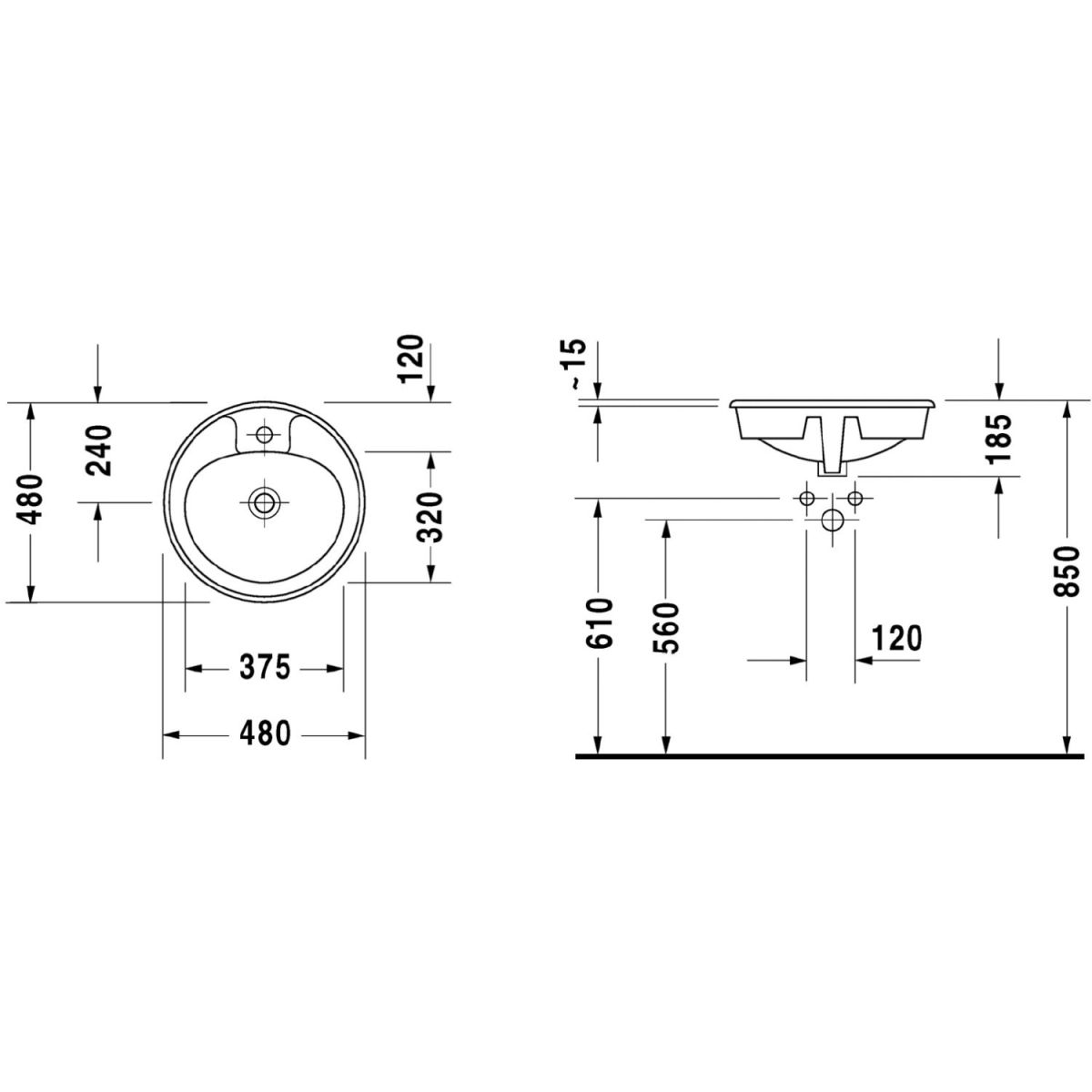 Duravit Manua mosdótál 48x48 cm kerek süllyesztett fehér 5220480000