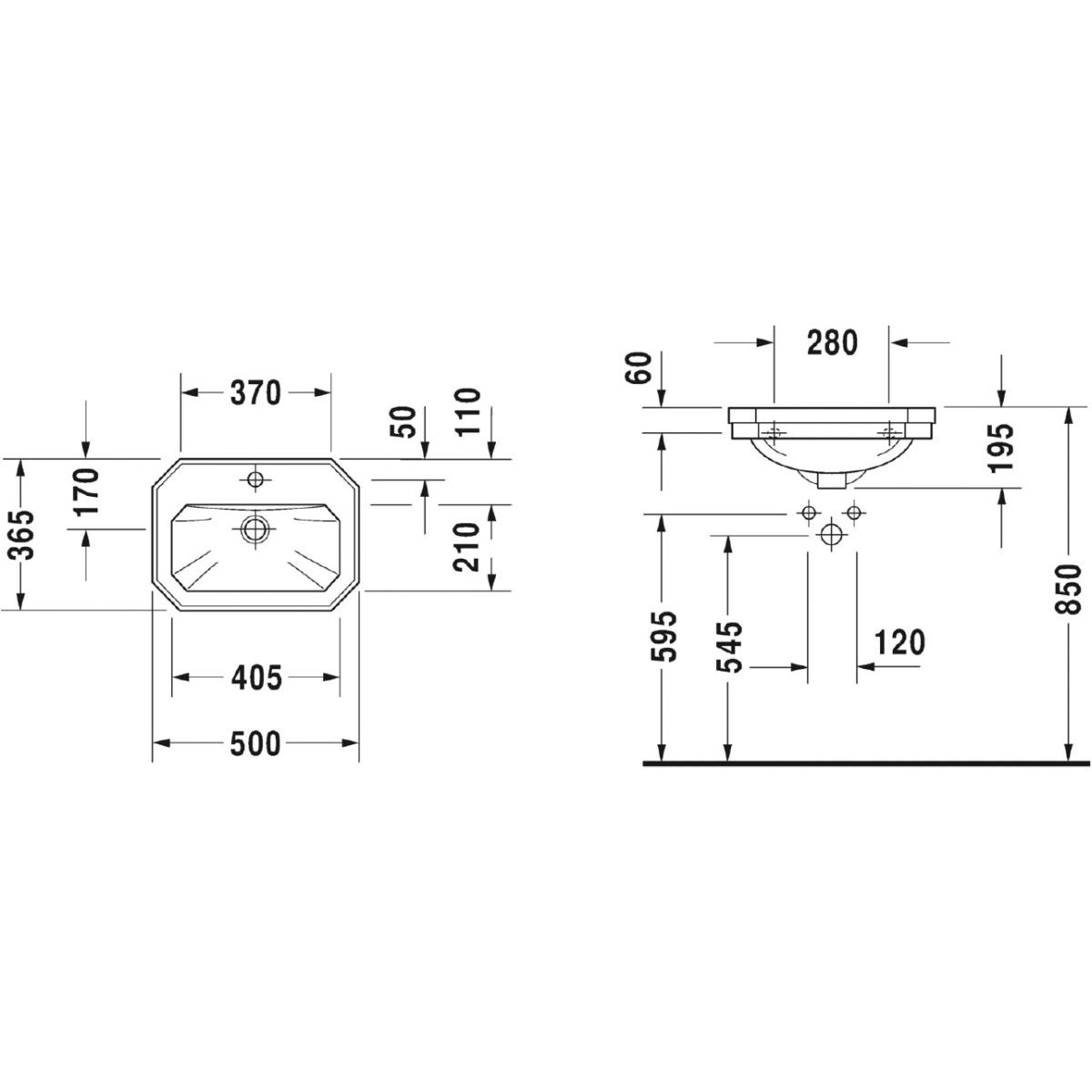 Duravit Seria 1930 mosdótál 50x36.5 cm klasszikus fehér 07855000001