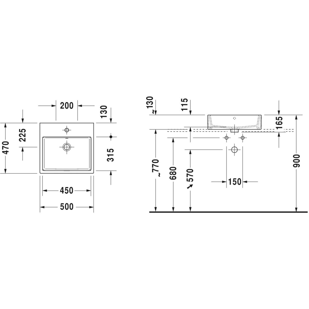 Duravit Vero Air mosdótál 50x47 cm négyszögletes mosdótálak fehér 2352500000