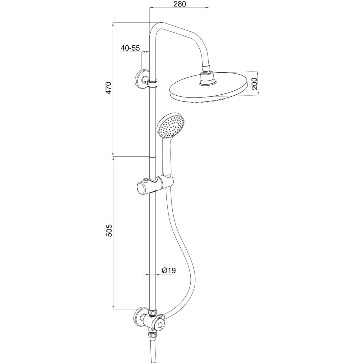 Top zuhanykészlet 100 cm-es zuhanyrúddal. A felső fogantyú állítható - használja a régi lyukakat. Forgatható fejzuhany 1 fúvókával és tisztító fúvókákkal. Kézi zuhany 1 fúvókával és tisztító fúvókákkal. 150 cm-es rozsdamentes acél zuhanytömlő. Csúszka a zuhanykartonhoz. Kapcsoló a fejzuhany és a kézi zuhany közötti váltáshoz. A kapcsoló az alsó fogantyú része. A meglévő keverőhöz való csatlakozótömlő tartozék.