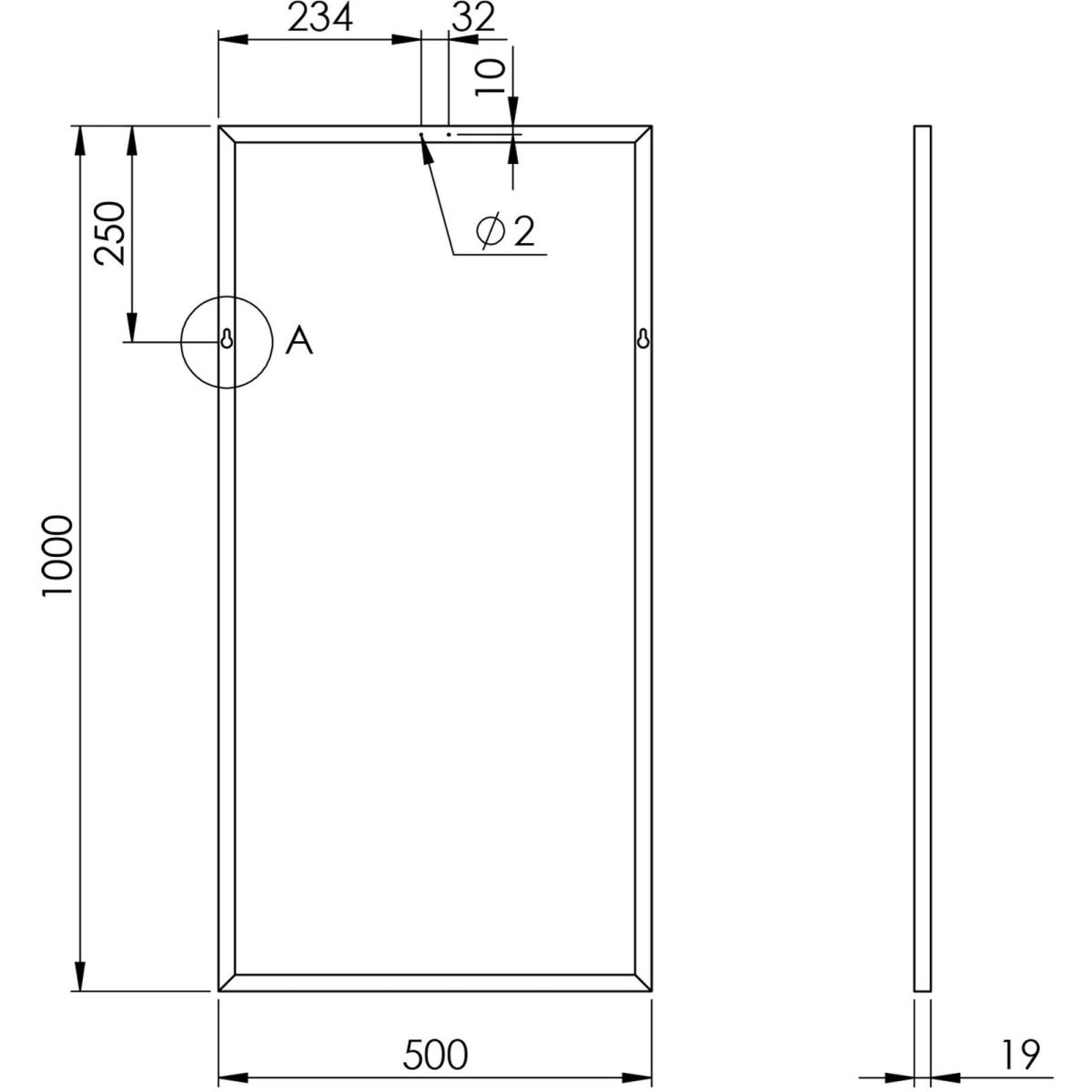 - a tükör vastagsága kerettel együtt: 1,9 cm