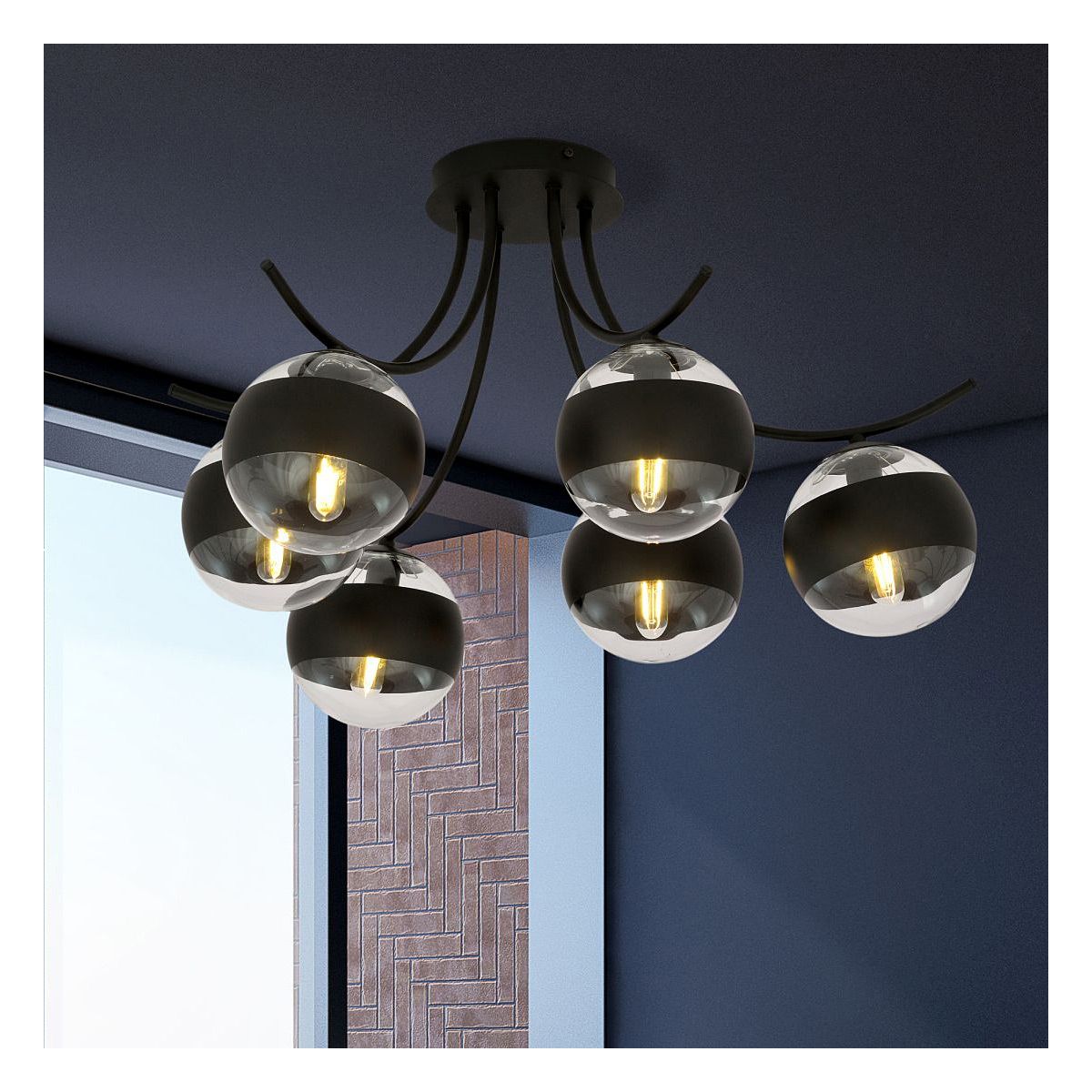 Emibig Boston Stripe mennyezeti lámpa 6x10 W fekete-átlátszó 1111/6