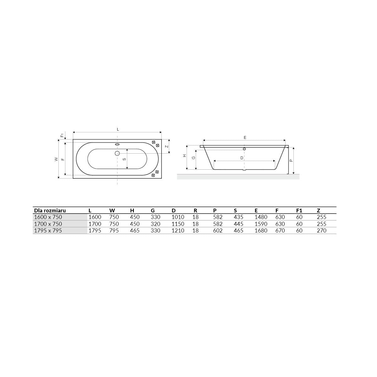 - a kád űrtartalma túlfolyóig: 200 liter