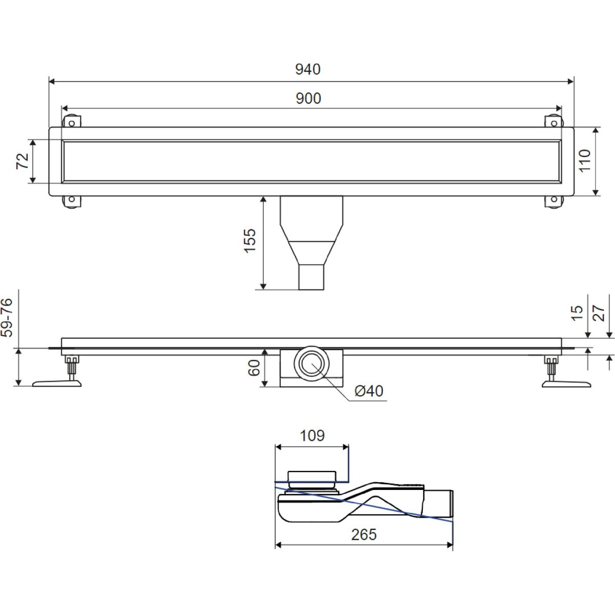 Excellent Stilio lineáris lefolyó ráccsal 90 cm INEX.1515.900.R.BL