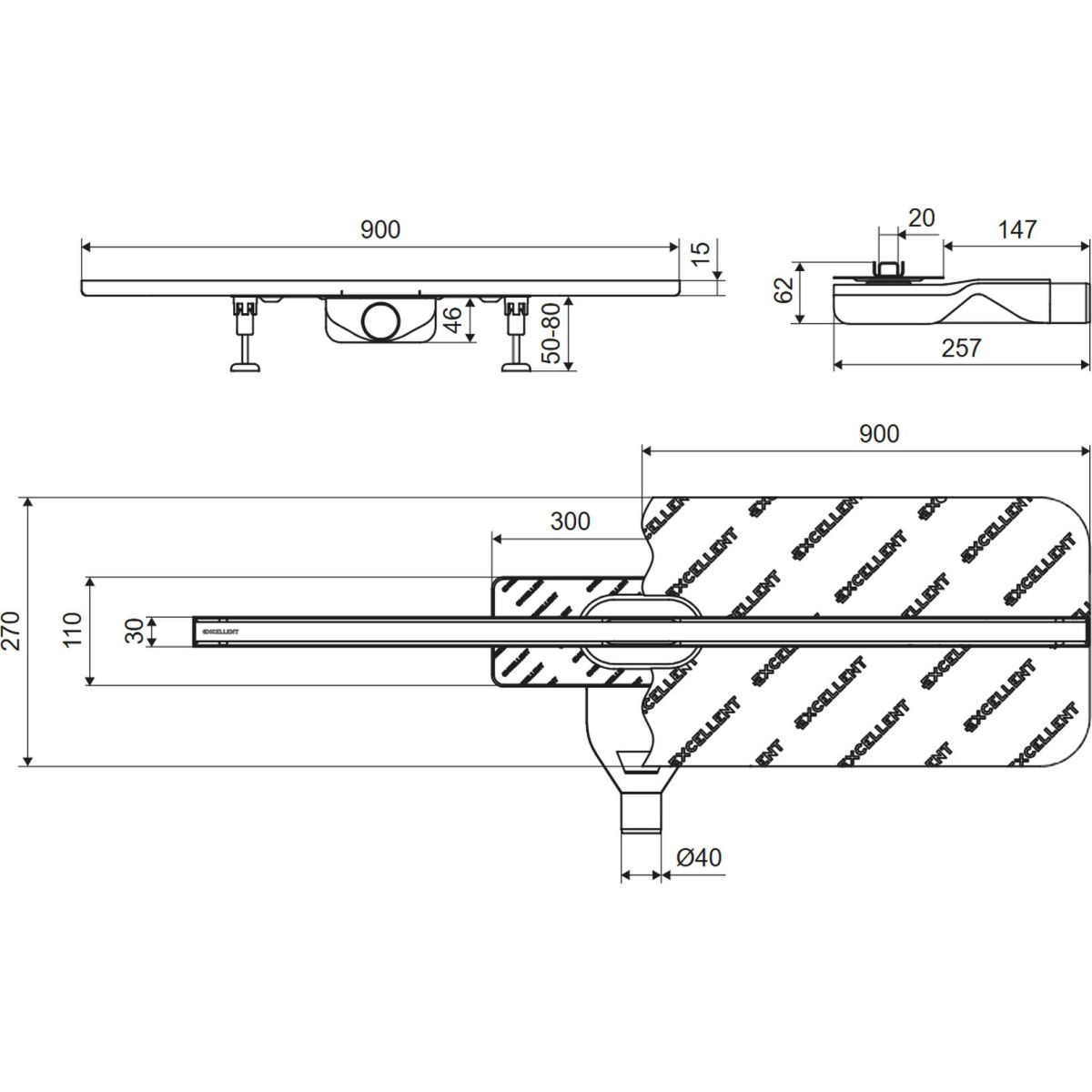 Karcsú formájának és a kivitelek széles választékának köszönhetően tökéletesen illeszkedik a modern fürdőszobák esztétikájához, függetlenül a belsőépítészeti stílustól. A kettős lefolyórendszer hatékonyan távolítja el a vizet mind a csempefelületről, mind a szigetelőszőnyegről, növelve a felhasználó biztonságát és védve a padlót a nedvességtől. A nagy hatékonyságú, alacsony szifon (28 l/perc) lehetővé teszi a telepítést még korlátozott padló alatti hely esetén is. A lefolyó háromféle hosszúságban kapható: 70, 80 és 90 cm hosszúságban