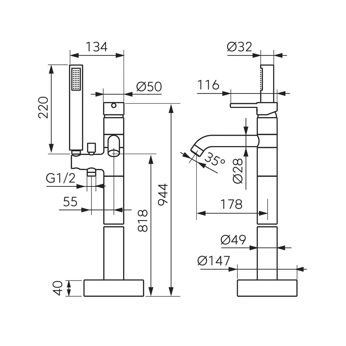 - Önálló fürdőkád csaptelep zuhanykészlettel