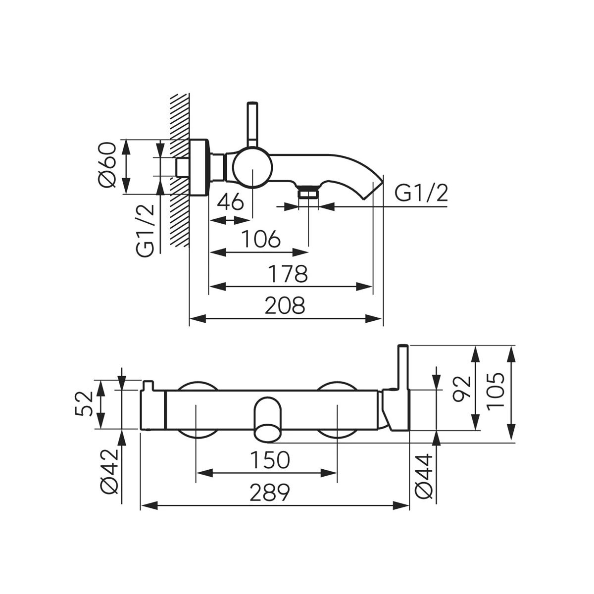 - Kifolyócső hatótávolsága [mm]: 178