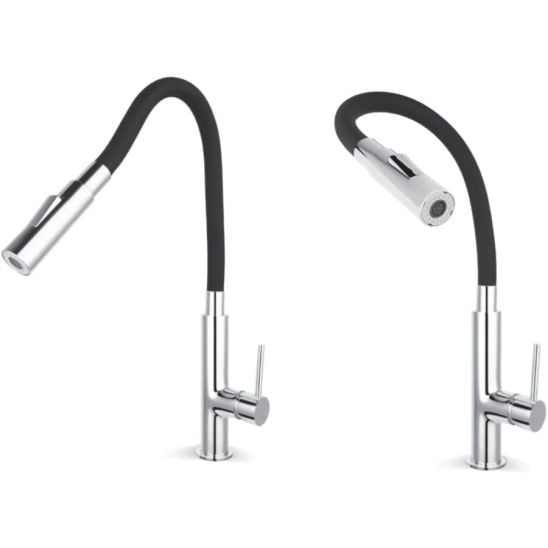 - rugalmas és elforgatható kifolyócső, tetszőleges forma beállításának lehetőségével
