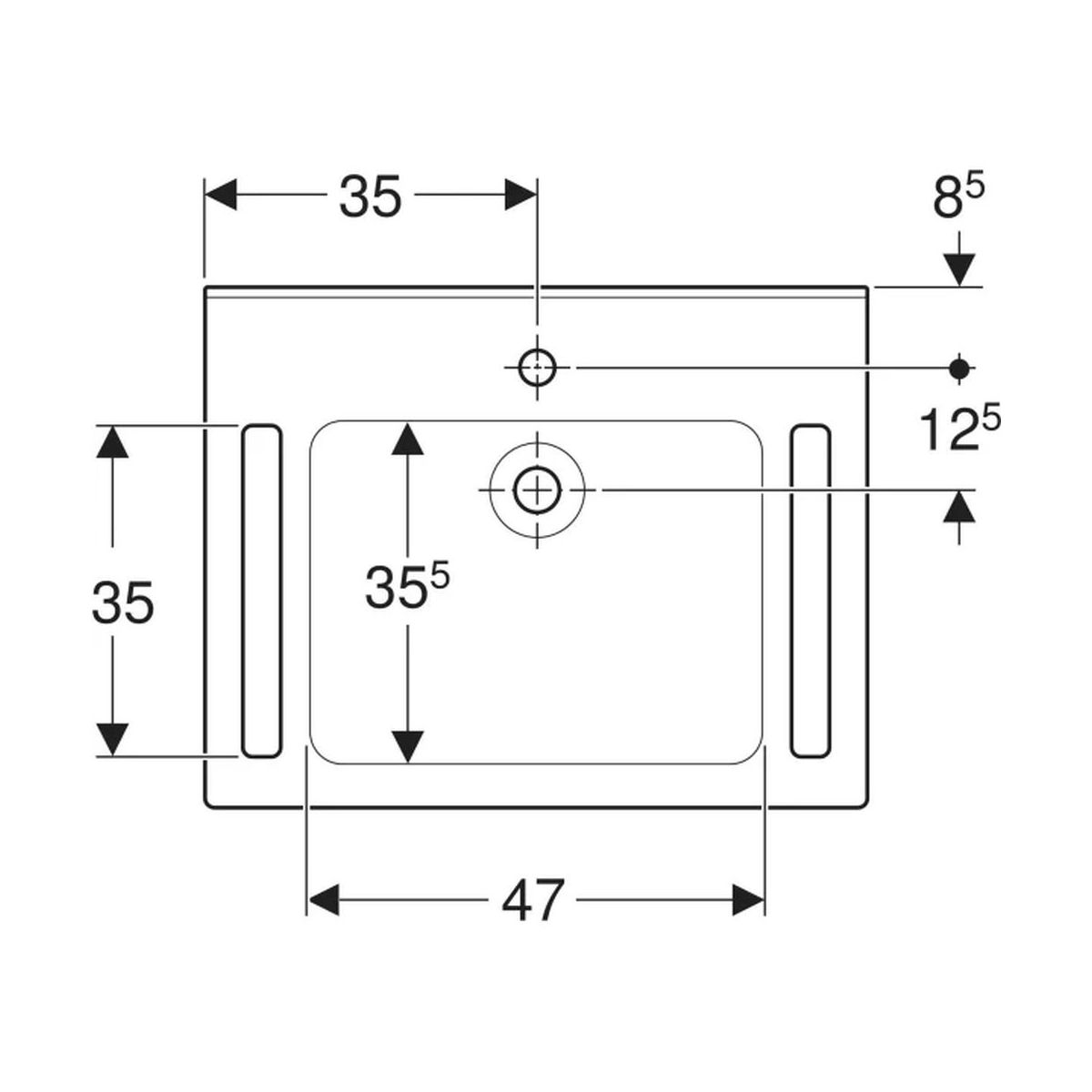 Geberit Publica mosdótál 70x55 cm négyszögletes klasszikus mozgássérülteknek fehér 402170016