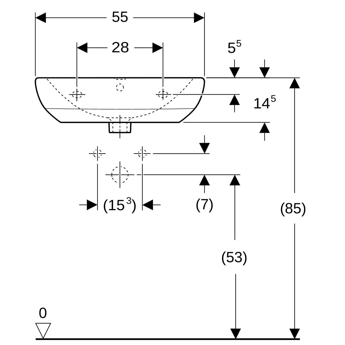 Geberit Selnova mosdótál 55x44 cm félkör alakú klasszikus fehér 500.315.01.7