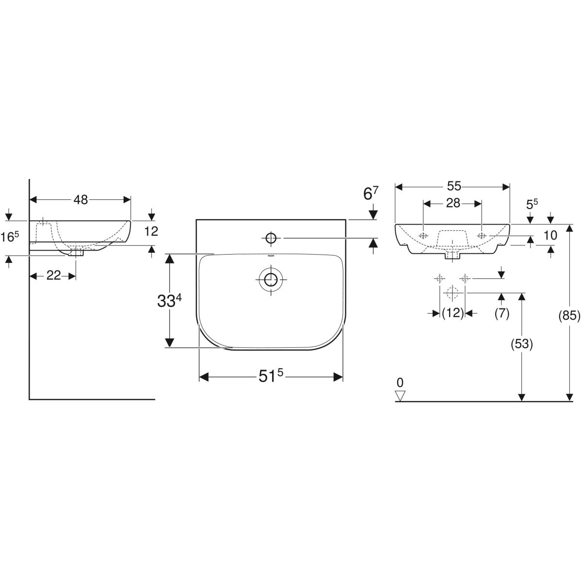 Geberit Smyle mosdótál 55x48 cm négyszögletes klasszikus fehér 500.227.01.1