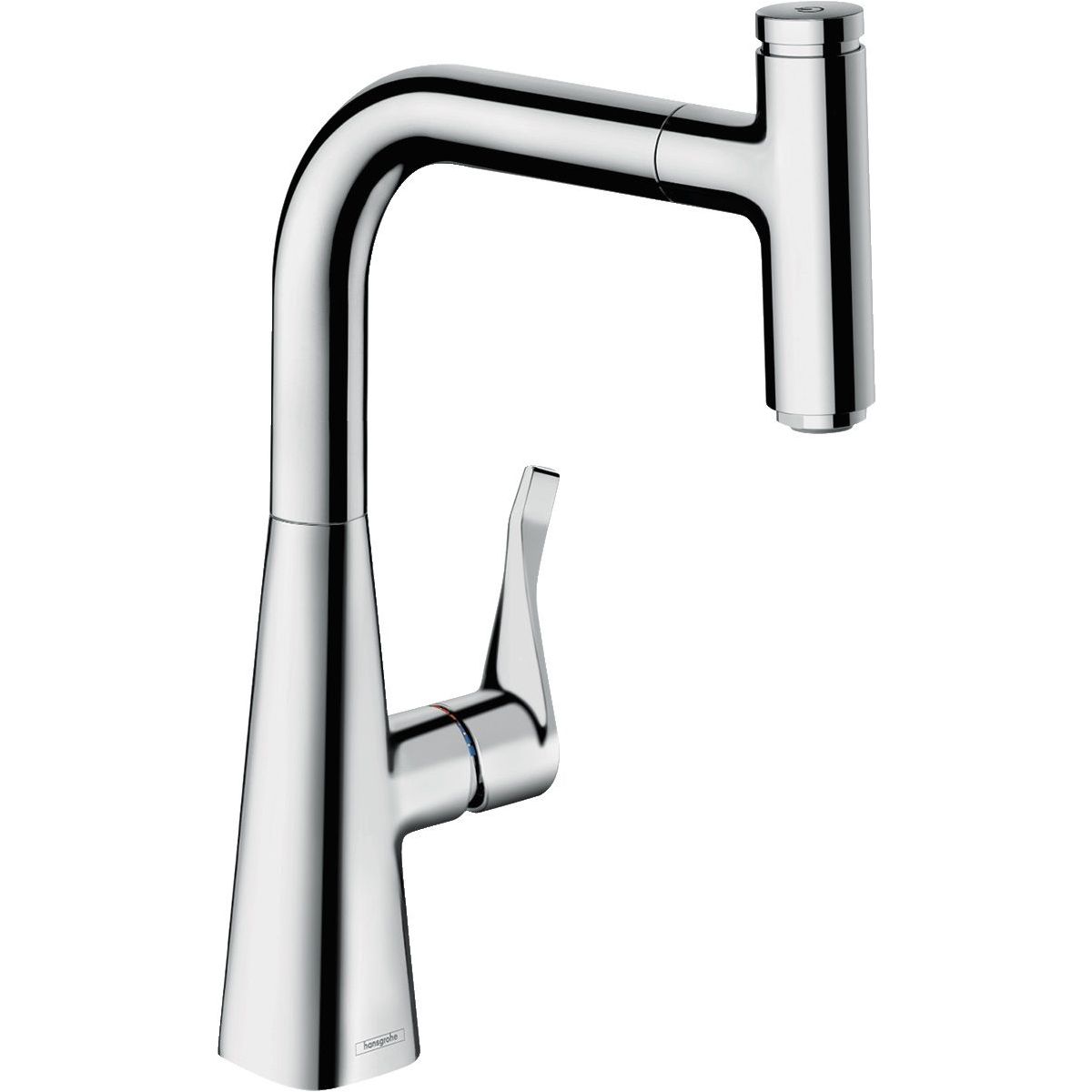 A hansgrohe Metris Select egykaros konyhai keverője króm színben, kényelmes 240 mm-es magasságával, kihúzható szórófejével és tömlődobozával megkönnyíti a konyhai munkát sokoldalúságának köszönhetően. A kifolyó kényelmes magassága bőséges helyet hagy a mindennapi konyhai munkákhoz, valamint a nagy edények töltéséhez és mosogatásához (ComfortZone 240).