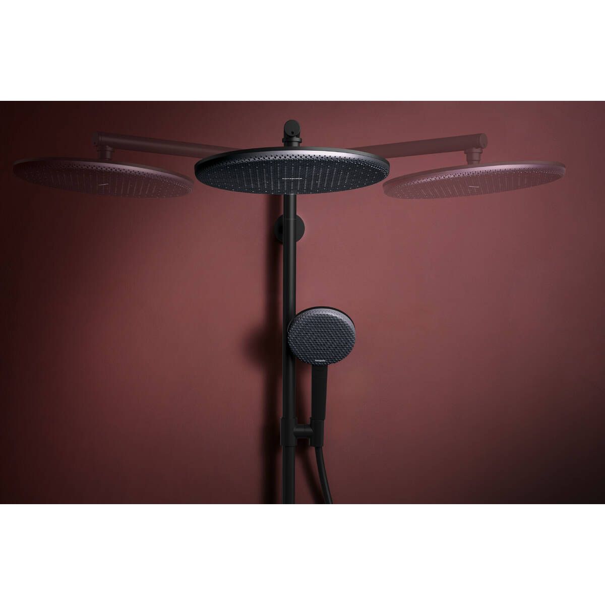 - Széles választék: hangulatától függően a (Select) gombbal kiválaszthatja a fejzuhany háromféle permetének egyikét. A fej feletti zuhany a RainAir permetezővel kényeztet - az Ön preferenciájától függően a hansgrohe PowderRain alternatívaként beállítható a beépítéskor